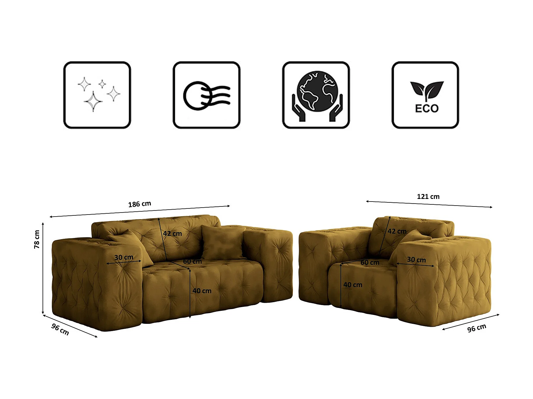 Set 2+1+1 LUX, Stoff Whisper, Golden