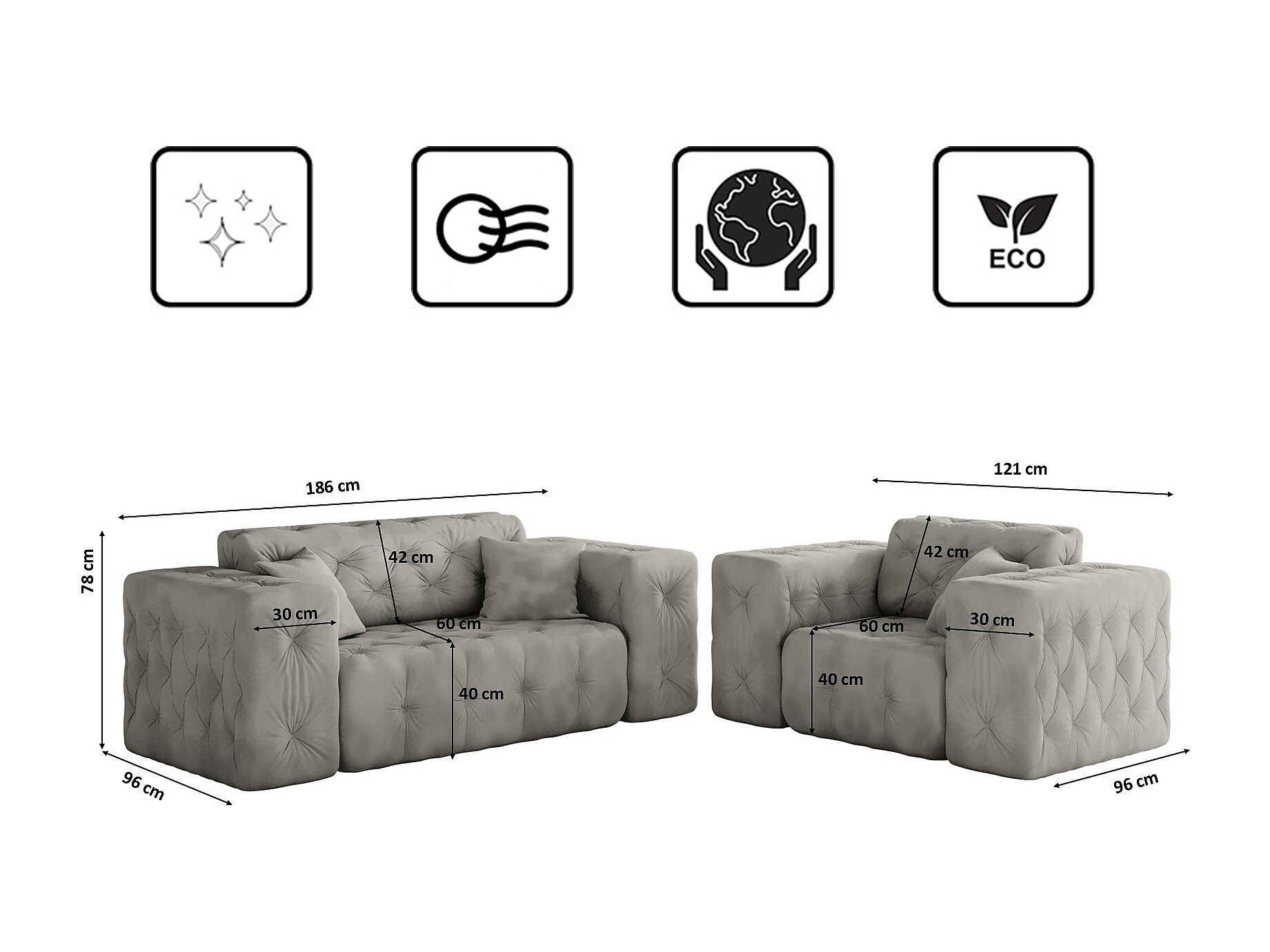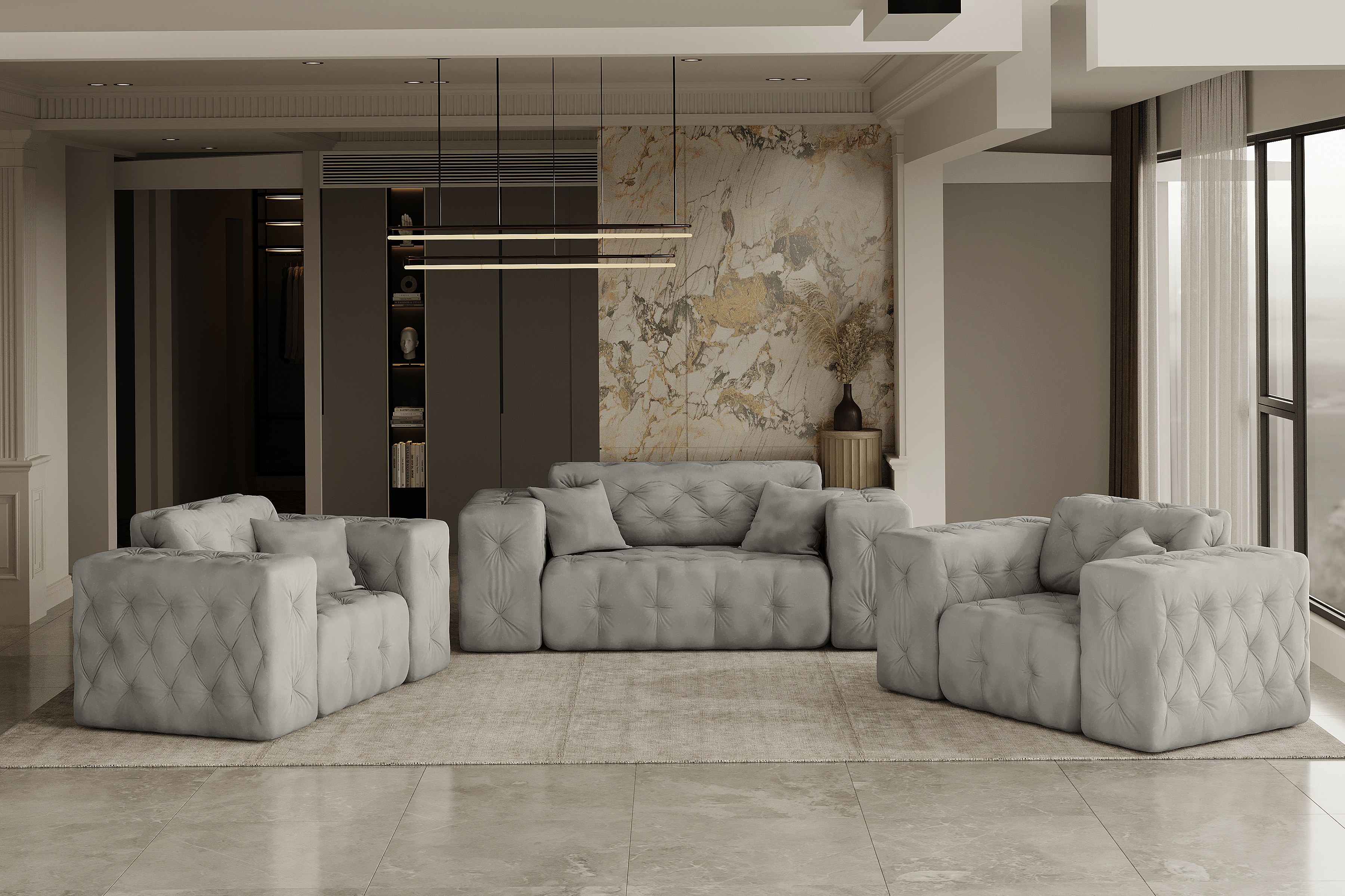 Set 2+1+1 LUX, Stoff Whisper, Silber
