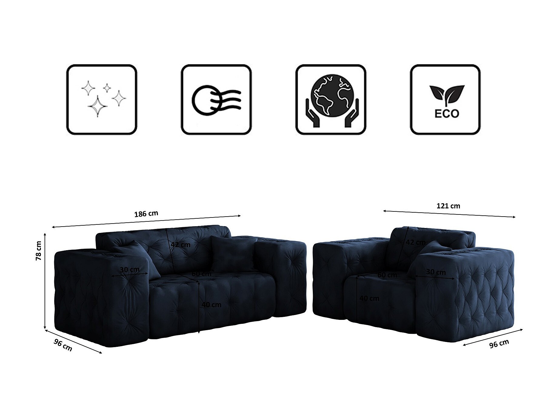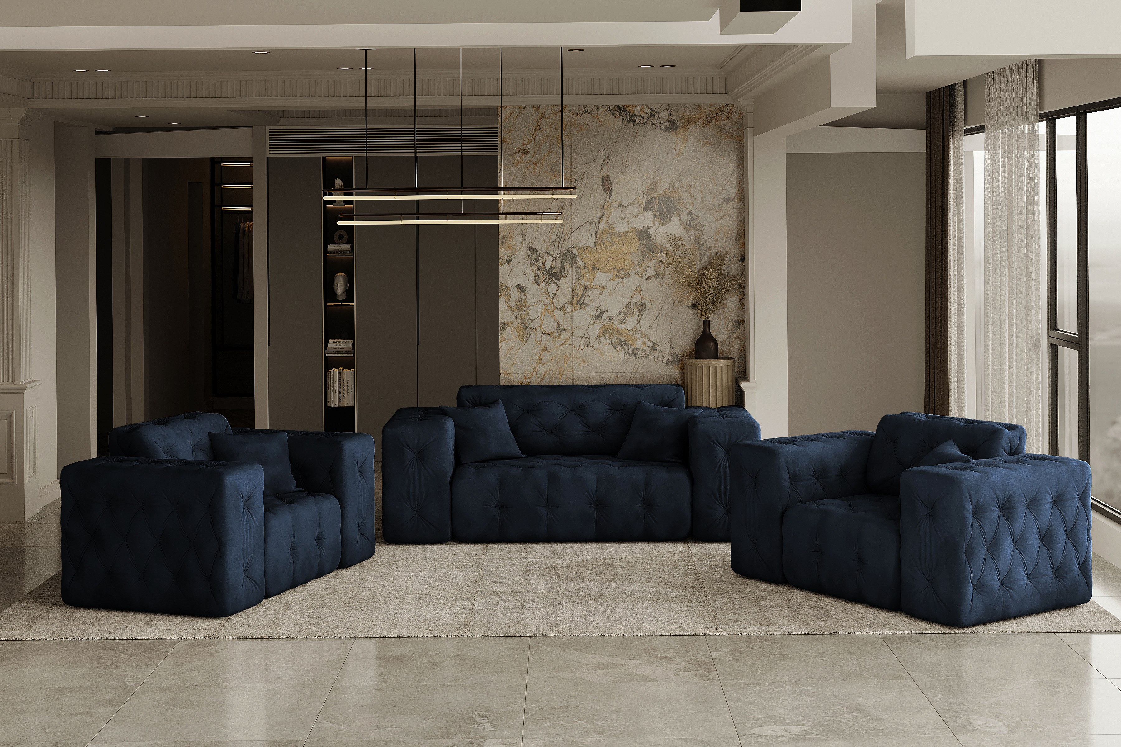 Set 2+1 LUX, Stoff Whisper, Blau