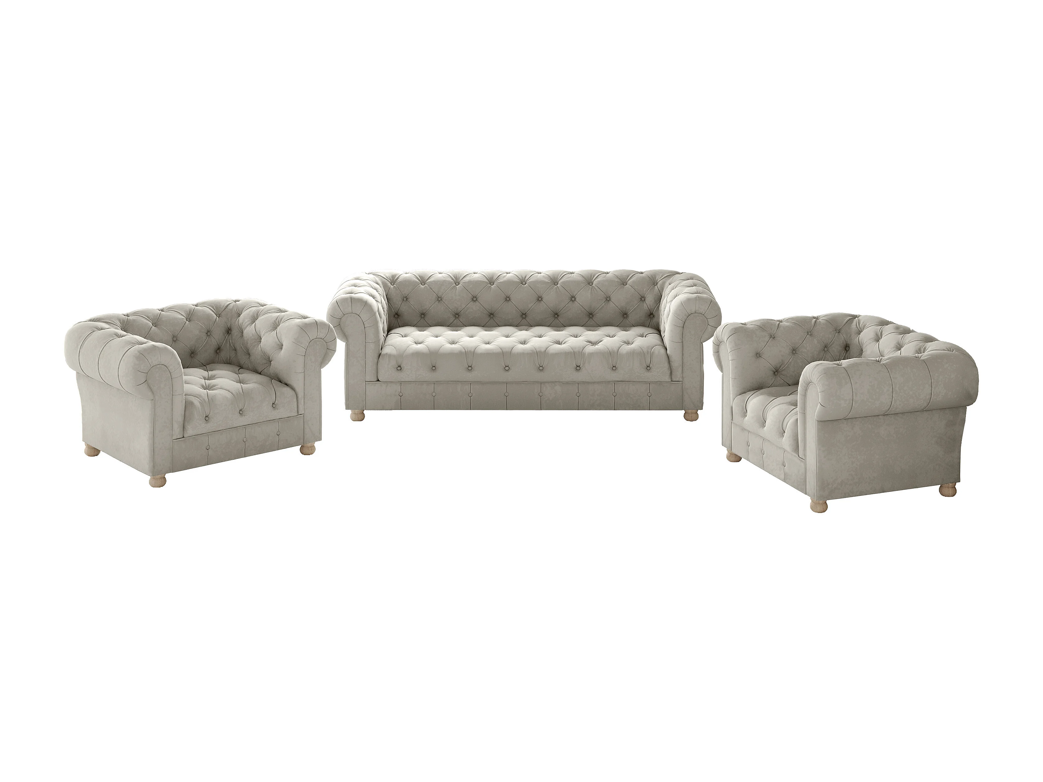 Set 3+1+1 CHESTERFIELD, Stoff Whisper, Creme