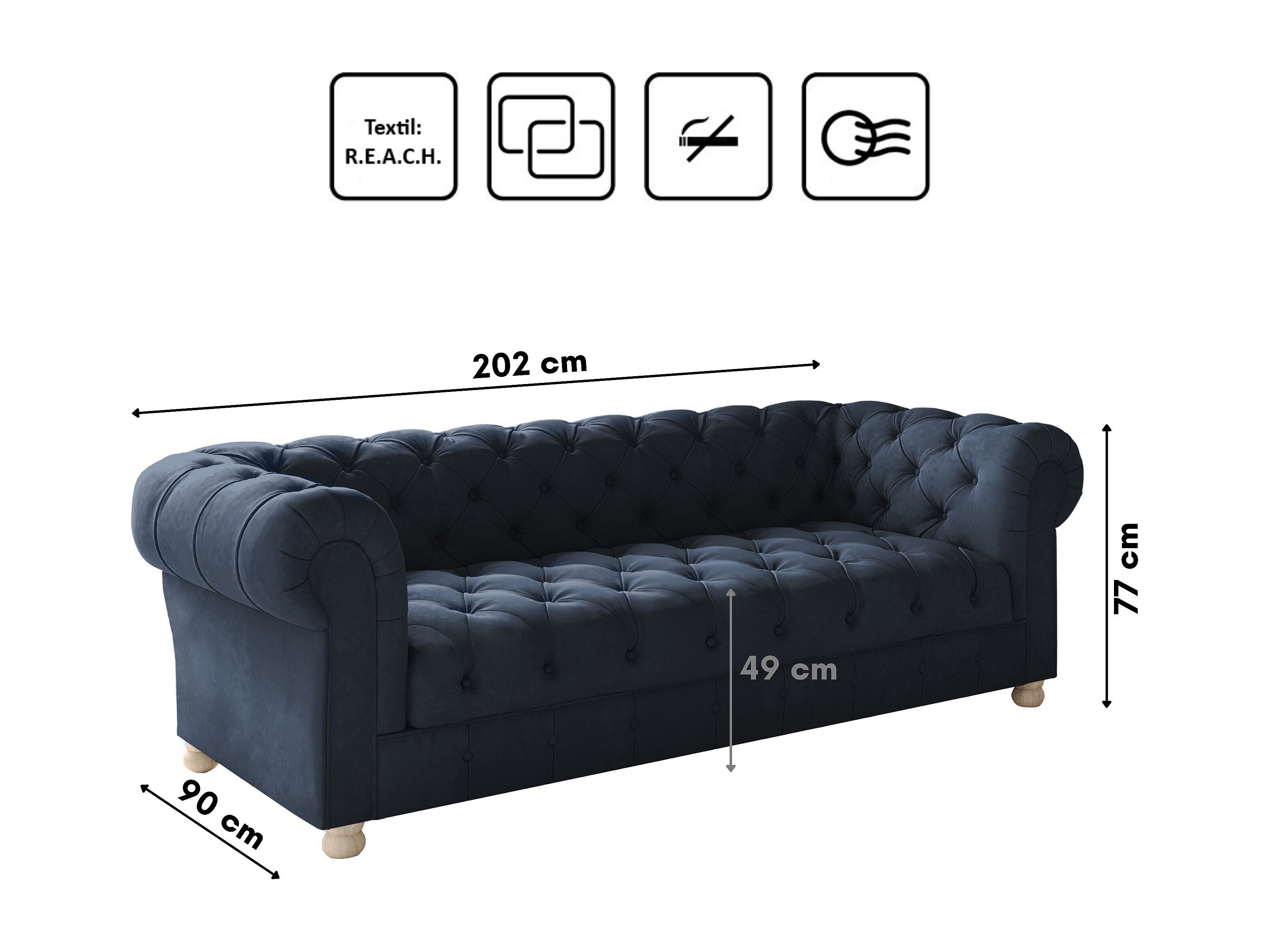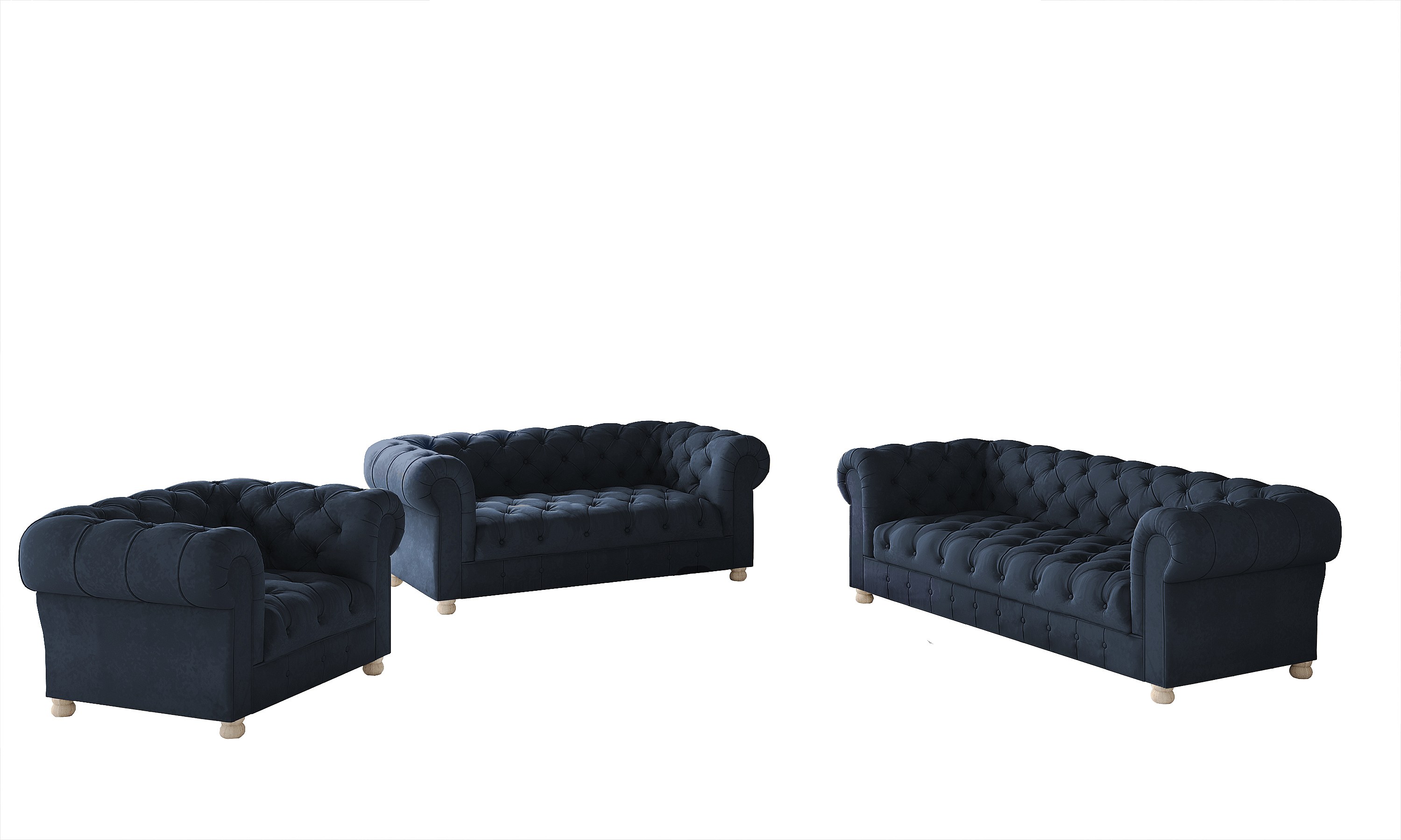 Set 3+2+1 CHESTERFIELD, Stoff Whisper, Blau