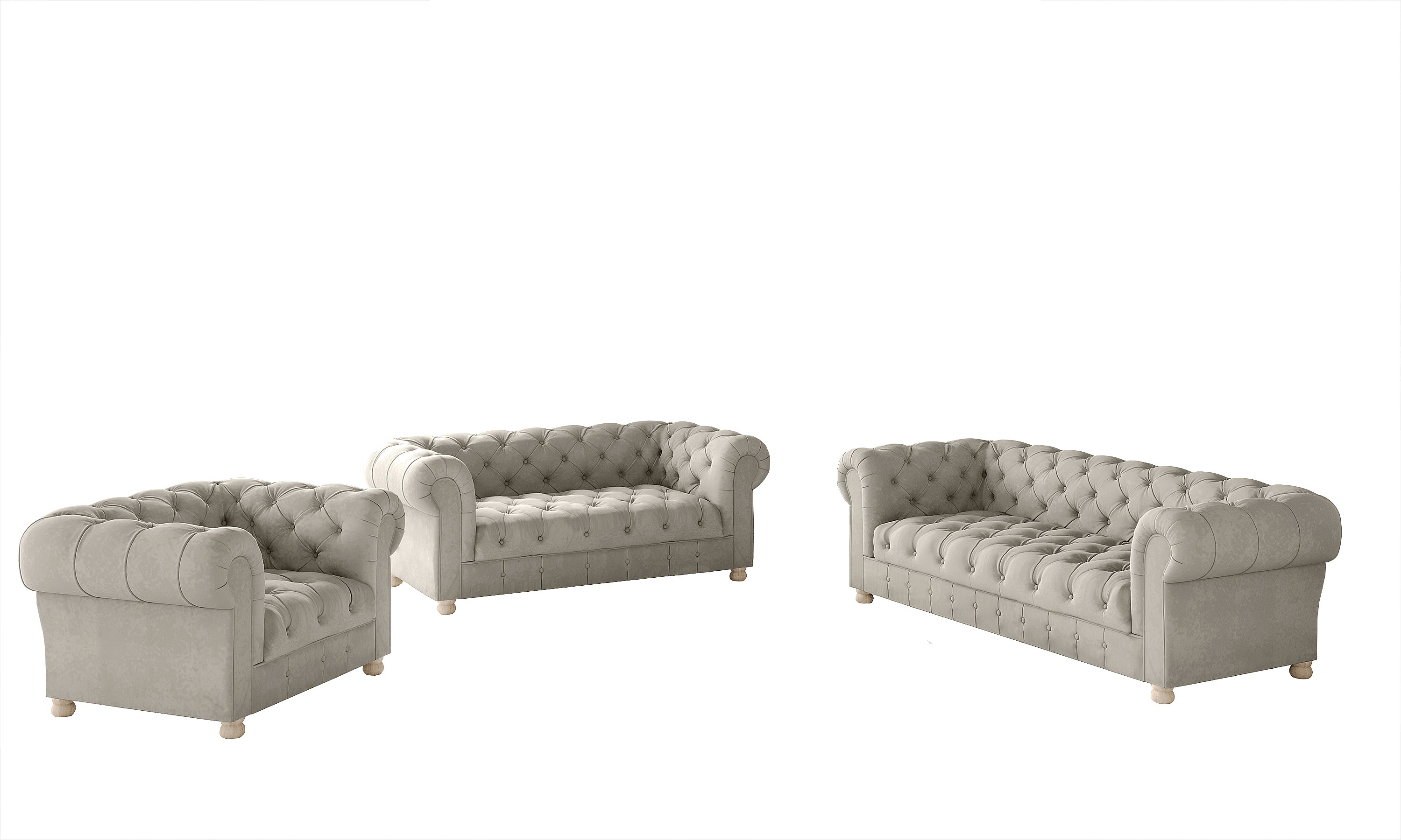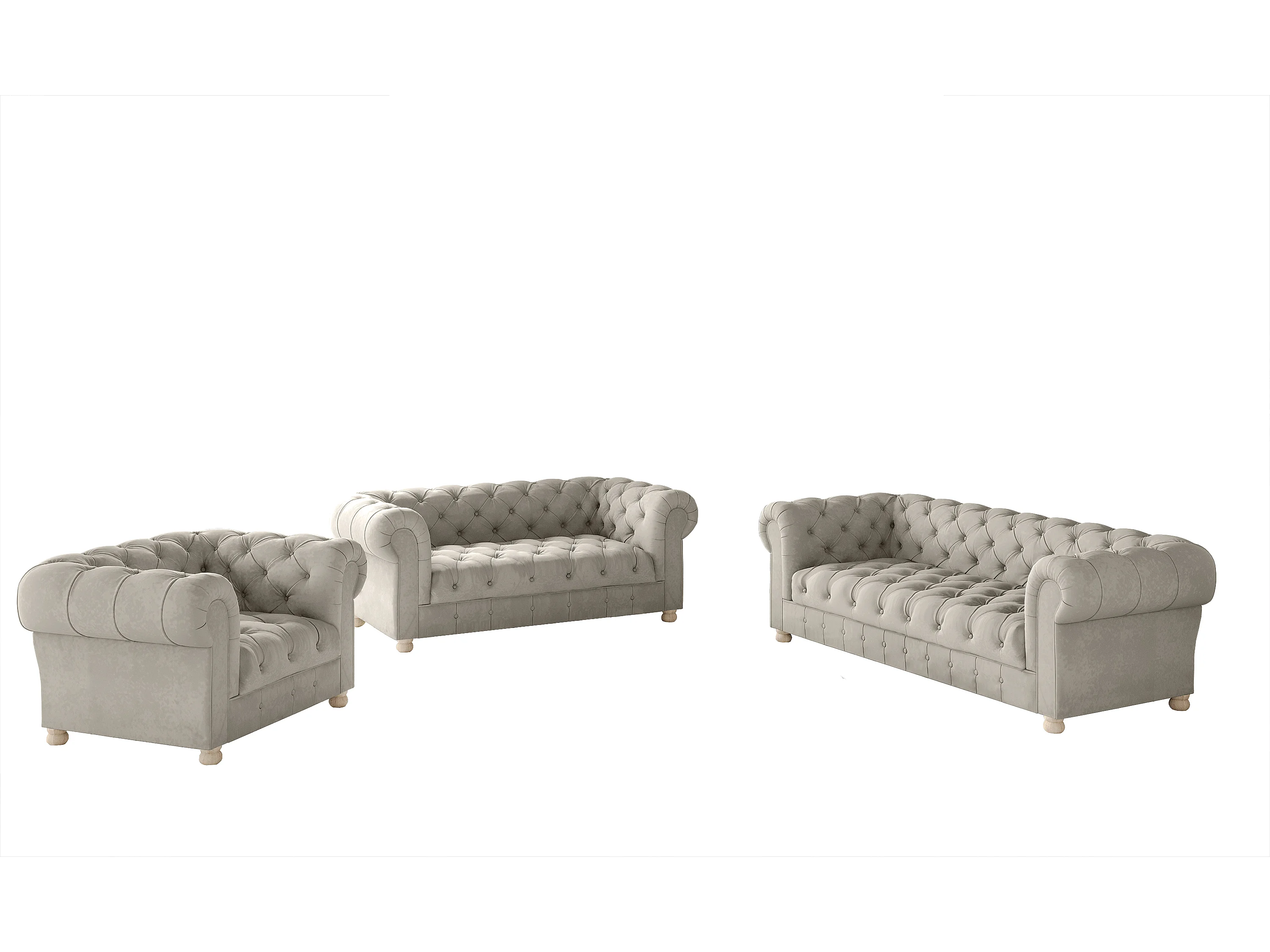 Set 3+2+1 CHESTERFIELD, Stoff Whisper, Creme