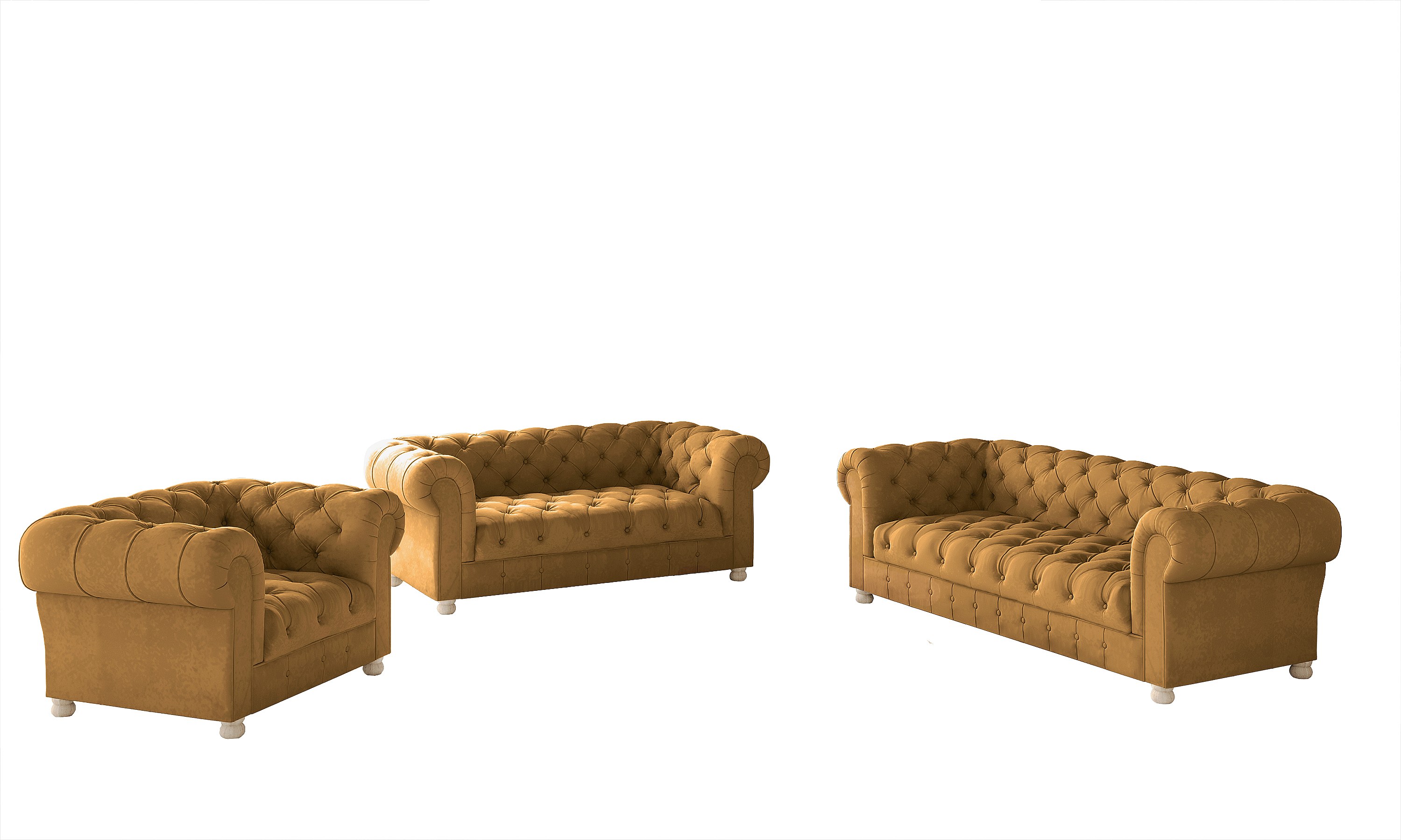 Set 3+2+1 CHESTERFIELD, Stoff Whisper, Golden