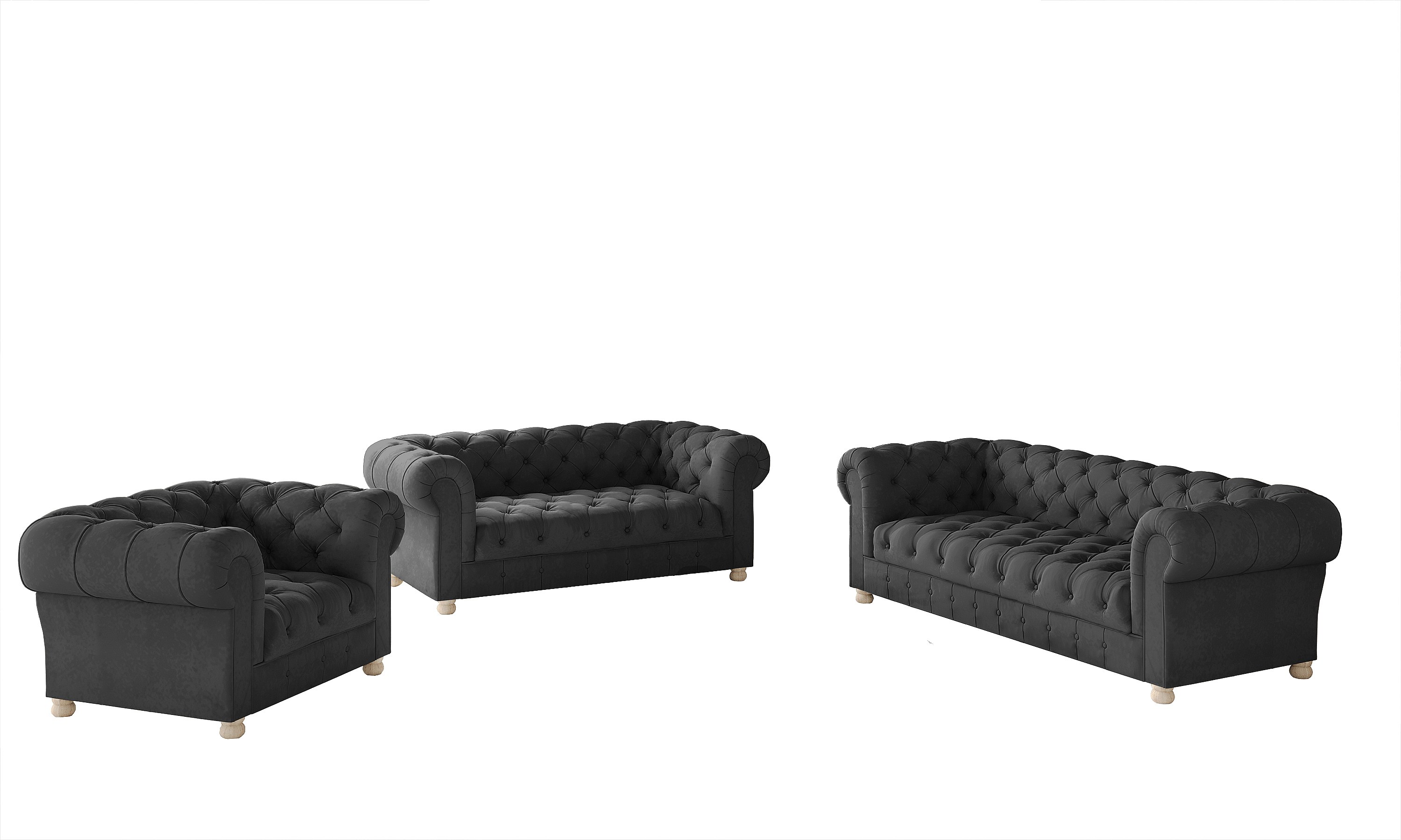 Set 3+2+1 CHESTERFIELD, Stoff Whisper, Graphit
