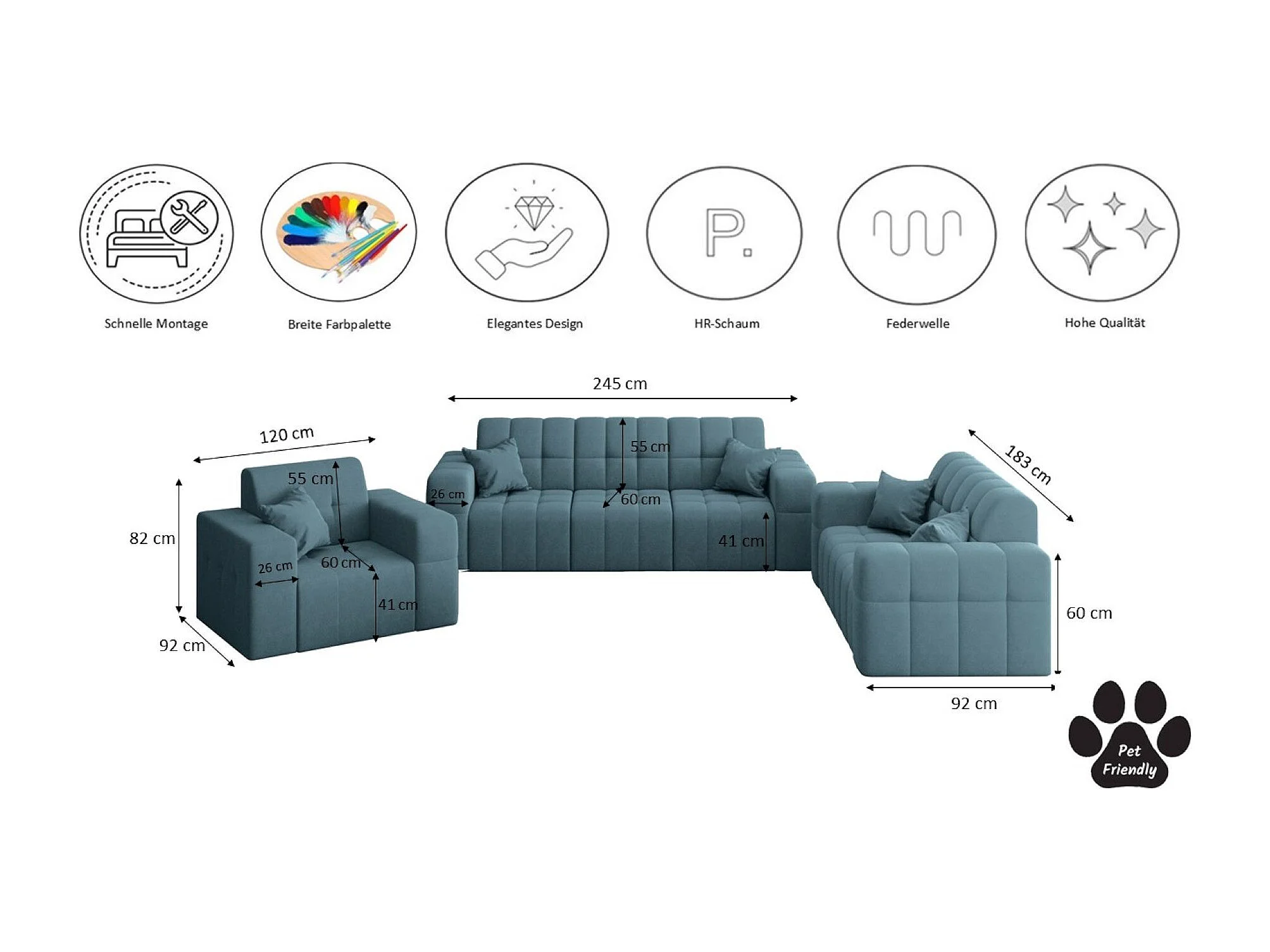 Set 3+2+1 NIMES, Stoff Portland, Blau