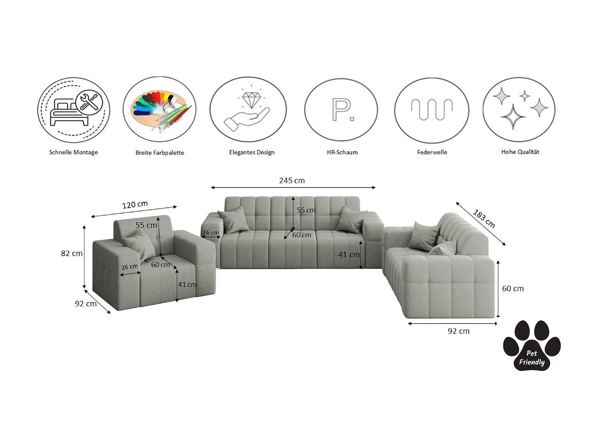 Set 3+2+1 NIMES, Stoff Portland, Grau