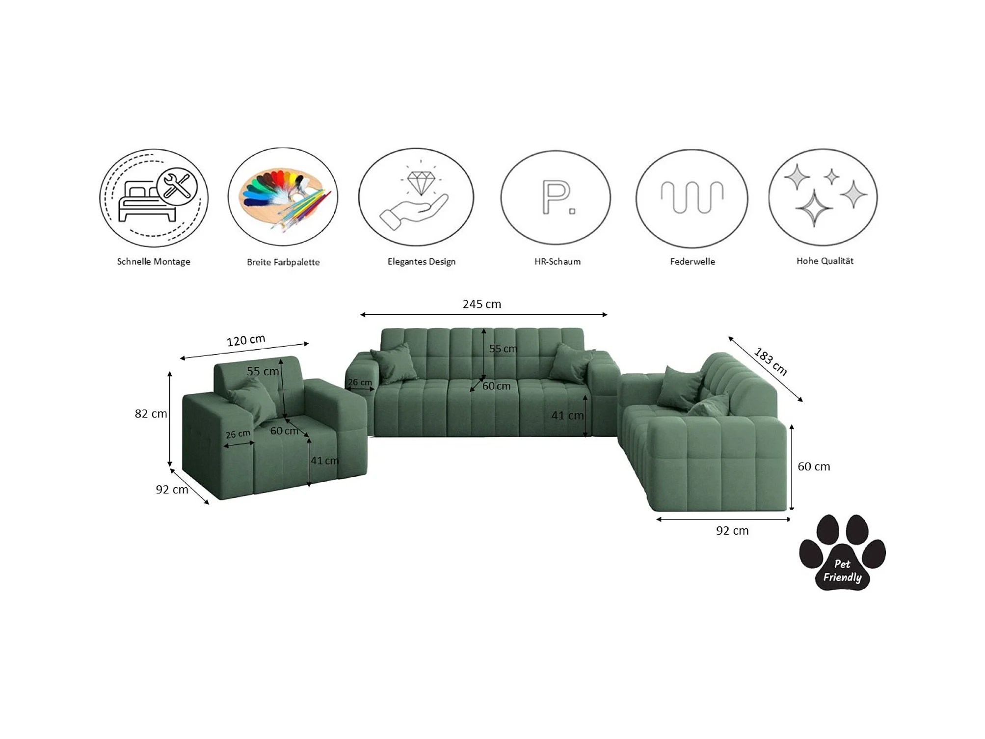 Set 3+2+1 NIMES, Stoff Portland, Grün