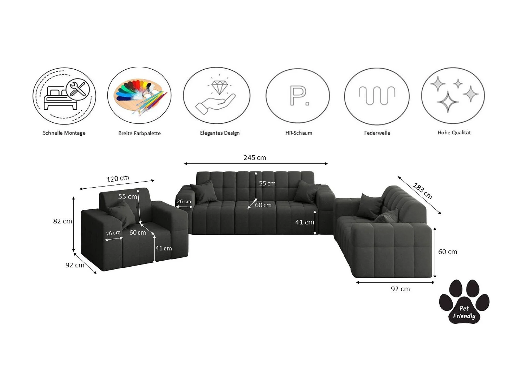 Set 3+2+1 NIMES, Stoff Portland, Schwarz