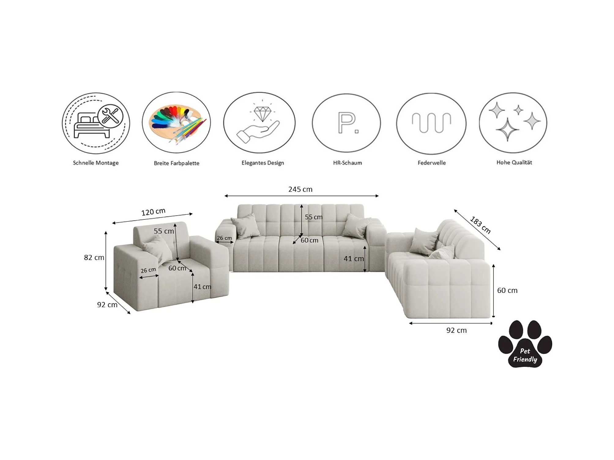Set 3+2+1 NIMES, Stoff Portland, Weiss