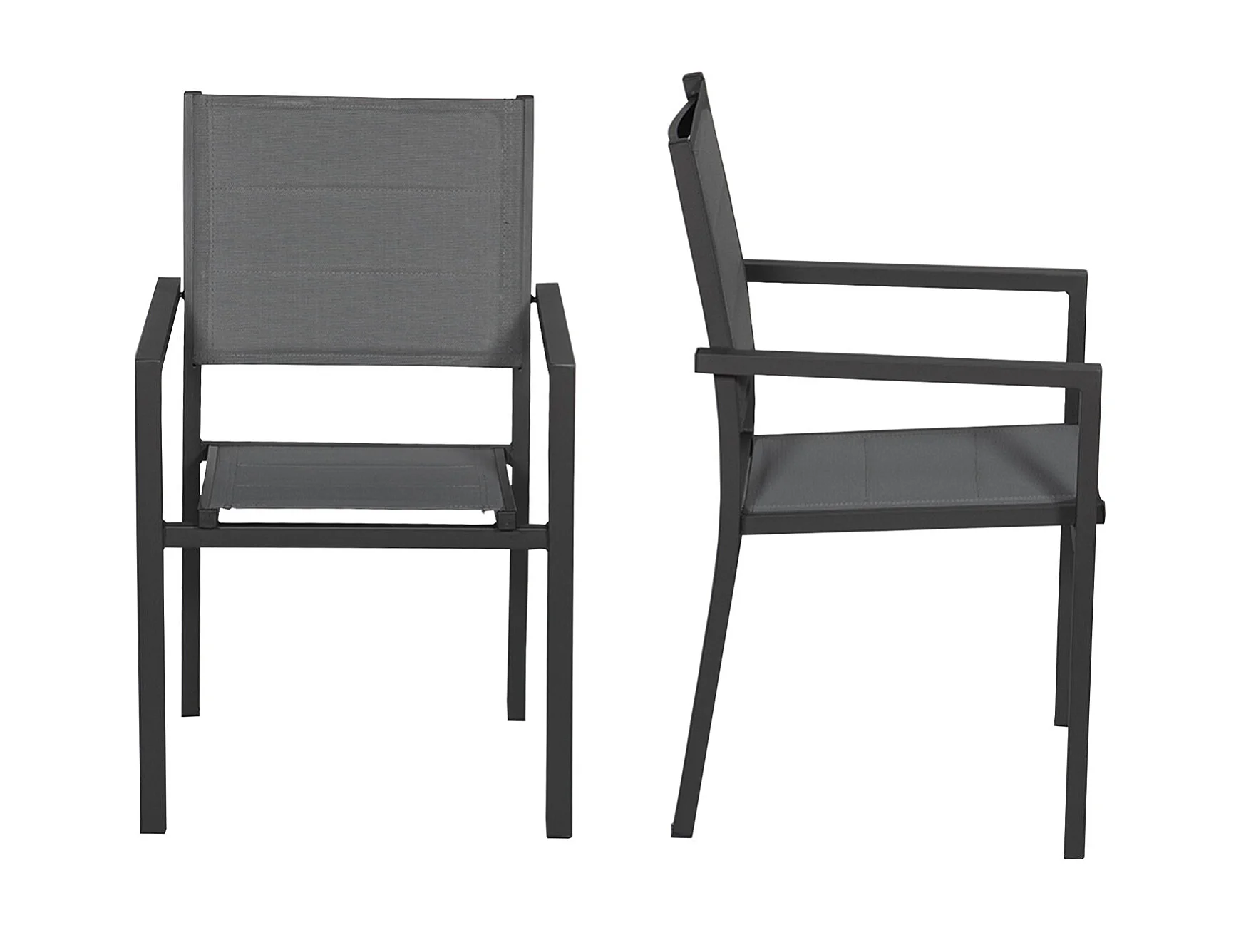 10er Set gepolsterten Stühlen aus anthrazitfarbenem Aluminium - graues Textilene
