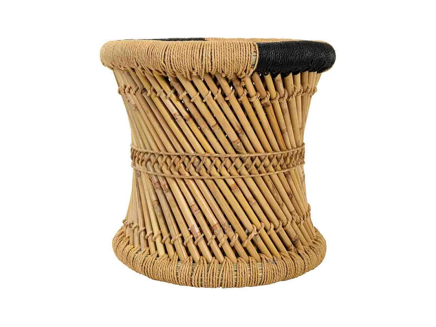 Set aus 2 braunen Hockern aus Bambus und Seil