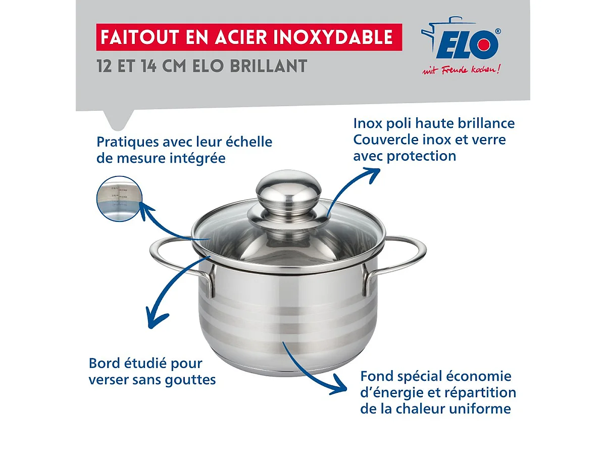 Set aus 2 Edelstahltöpfen Ohne PFAS 12 und 14 cm Elo Glänzend - Für Alle Herdarten Geeignet, Antihaftbeschichtet, Langlebig