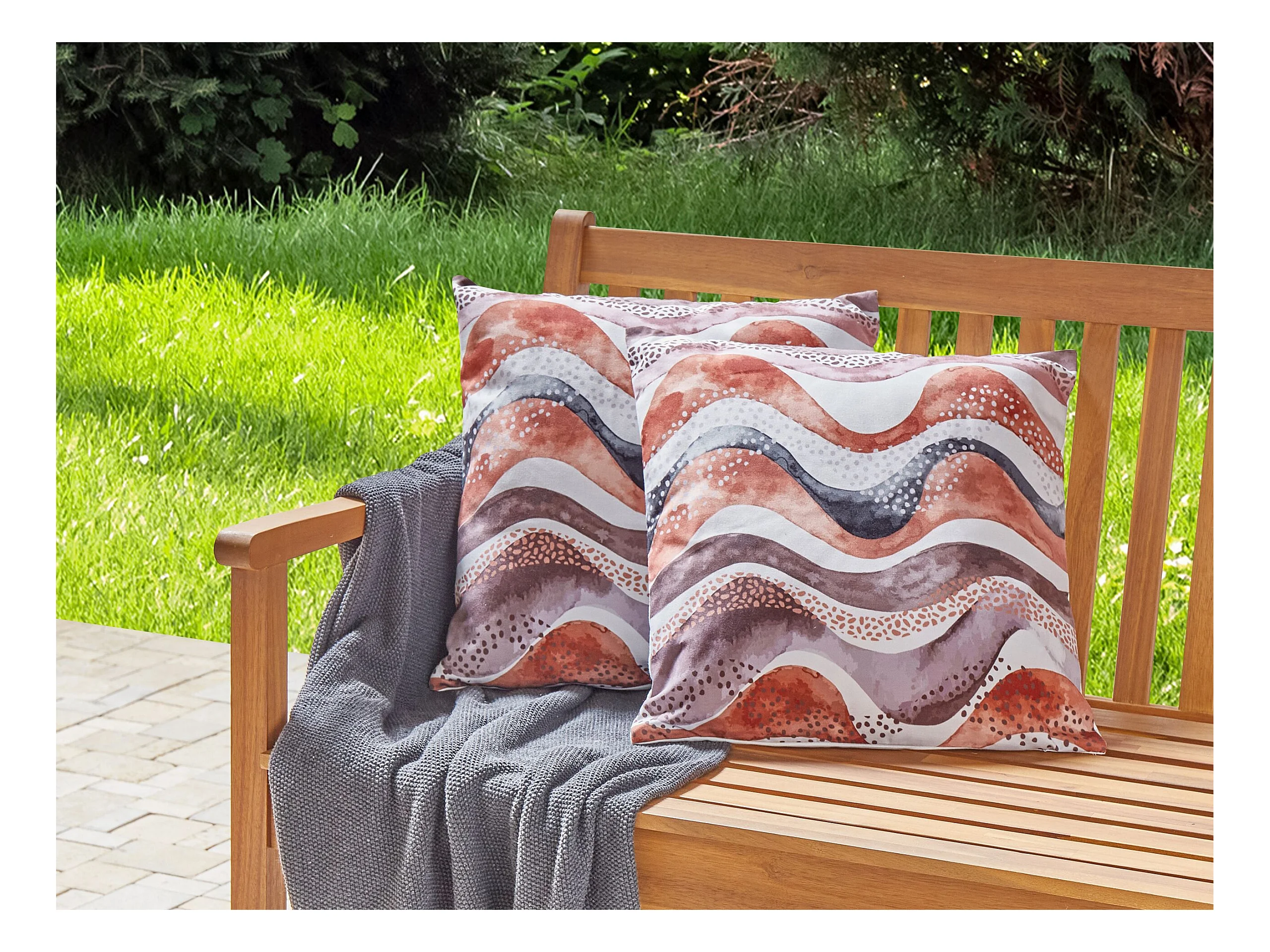 Set aus 2 Gartenkissen für den Außenbereich 45 x 45 cm Polyester Abstraktes Motiv Wellenmuster Rechteckig Braun Seborga