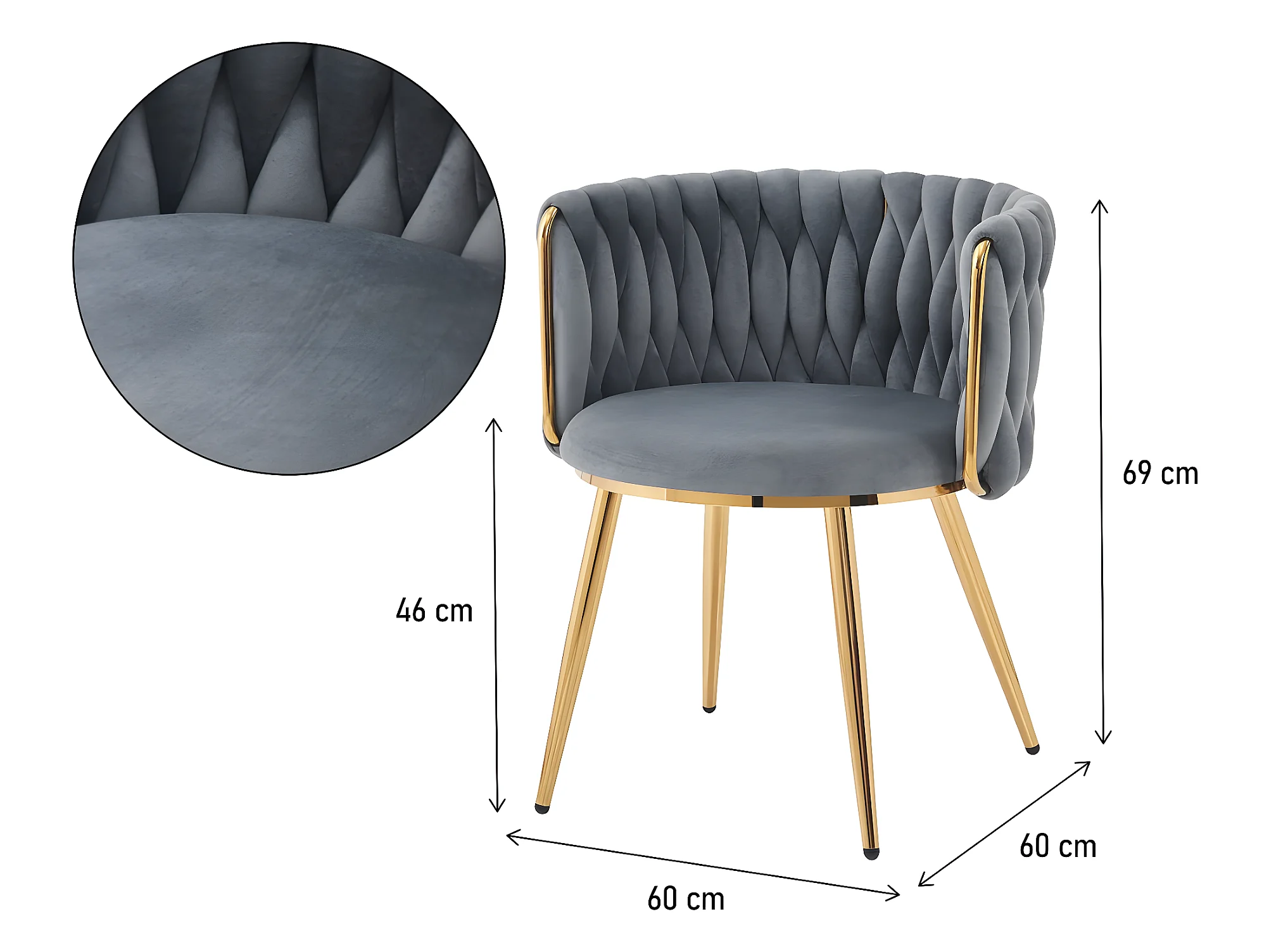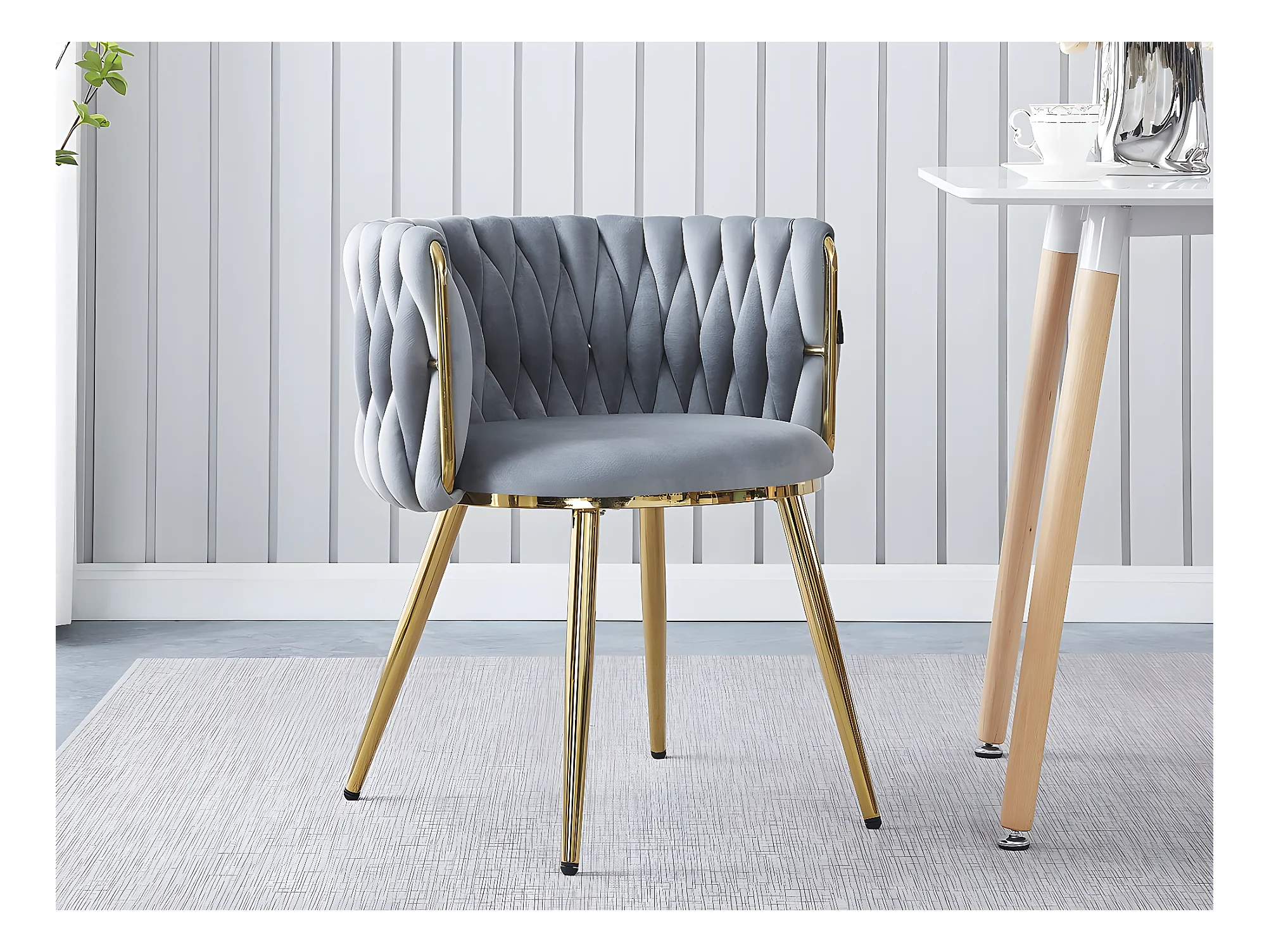 Stühle aus Samt mit Flechtung 2er-Set "Isa" - Grau