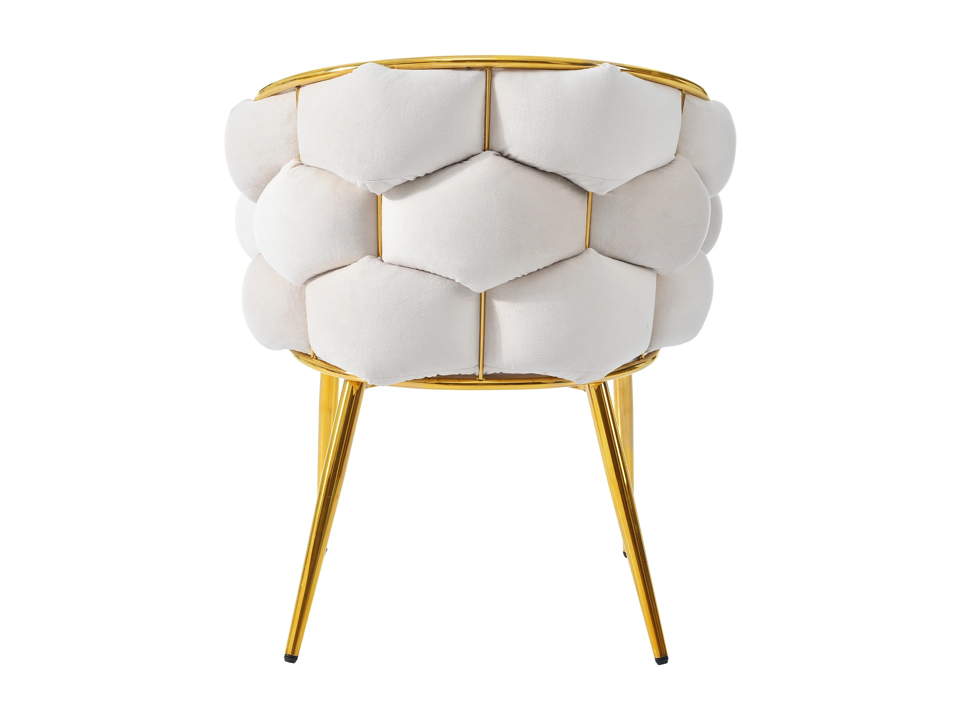 Set aus 2 Samt- und Metallstühlen, goldene Rückenlehne, 6 cm gepolsterte Sitzfläche – Beige