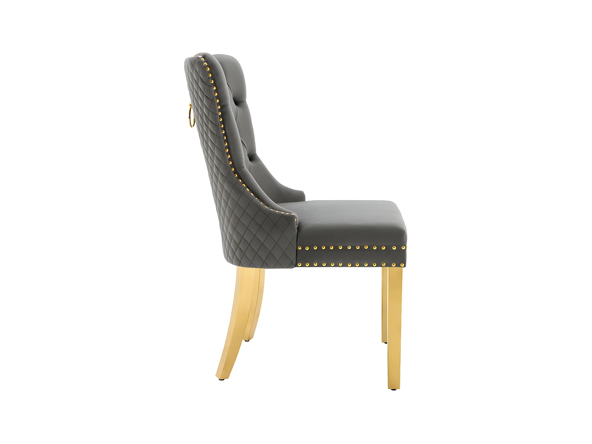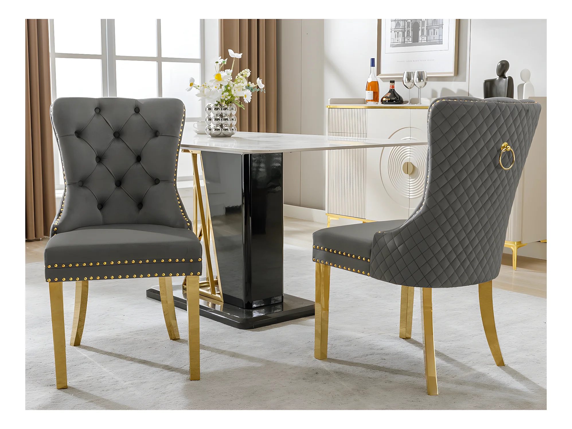Set aus 2 Samtstühlen mit Metallbeinen – Grau