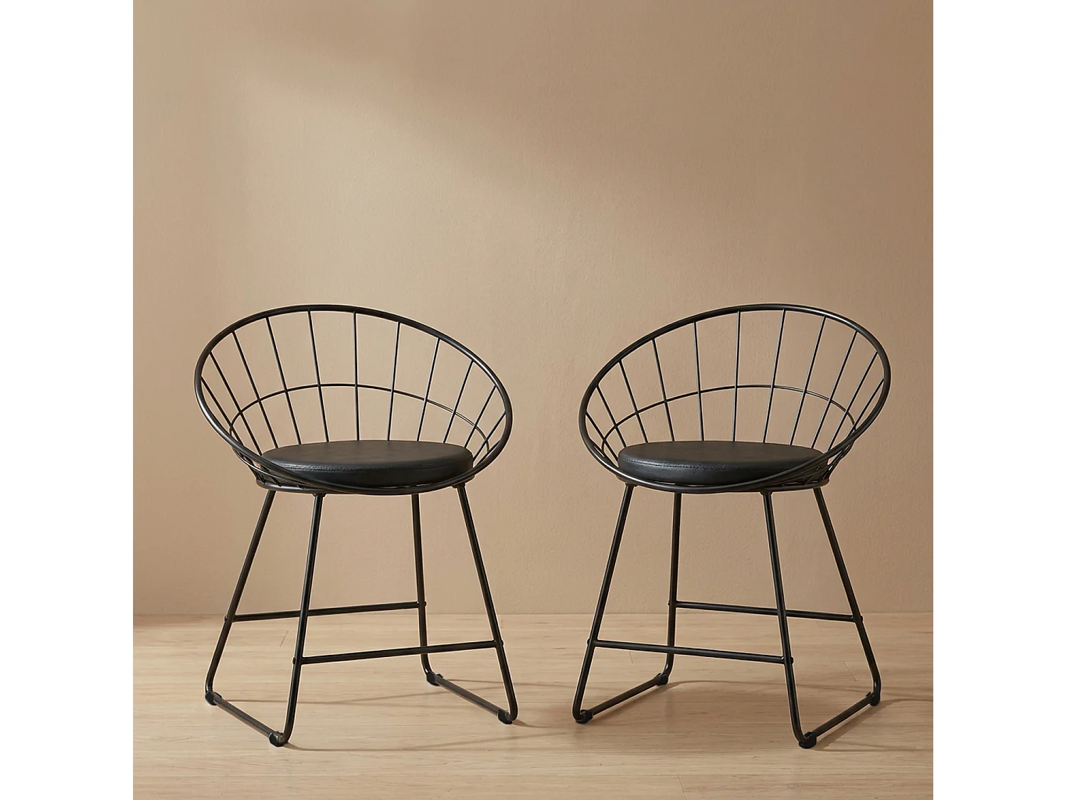 Set aus 2 Stühlen aus schwarzem Metall und schwarzem Kissen ALEX