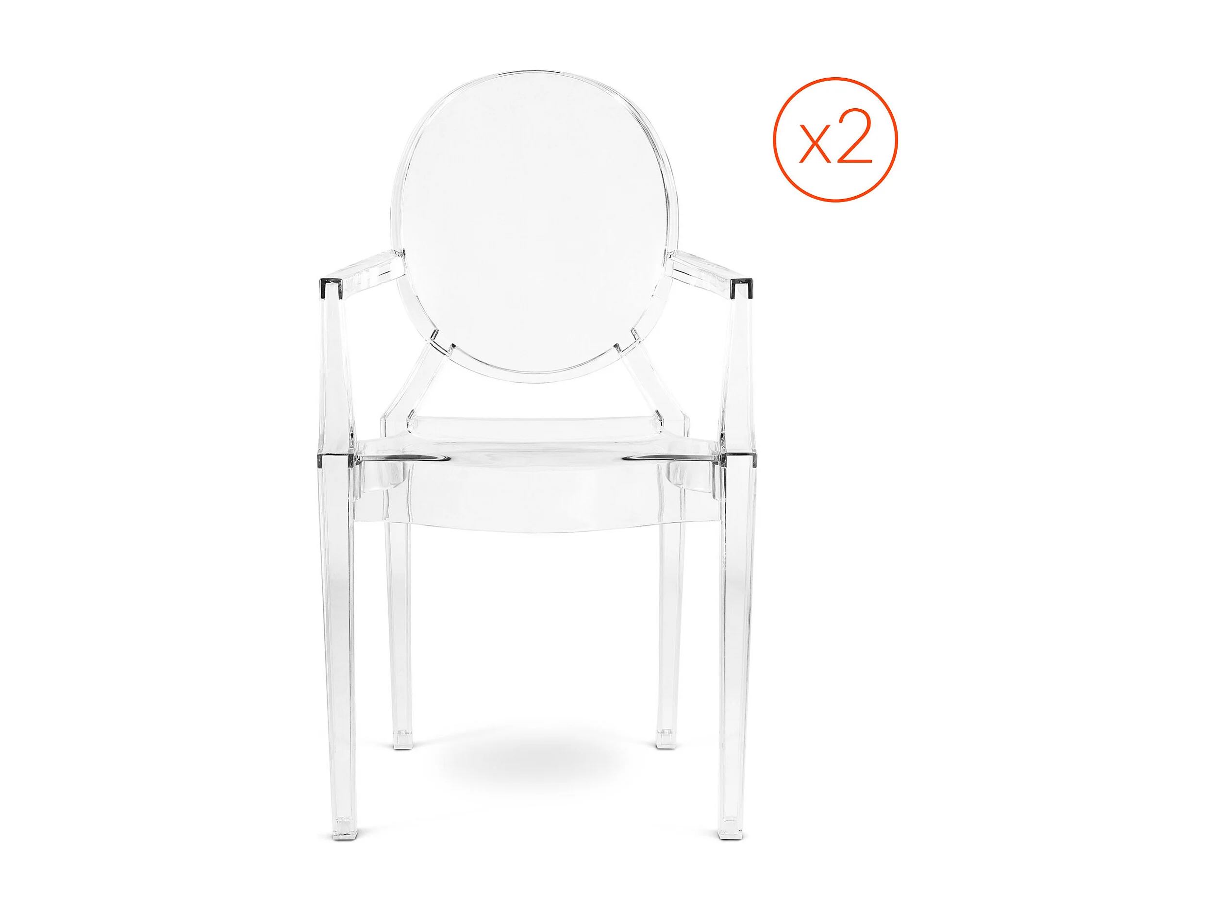 Set aus 2 transparenten Esszimmerstühlen - Armlehnen-Design - Louis XIV
