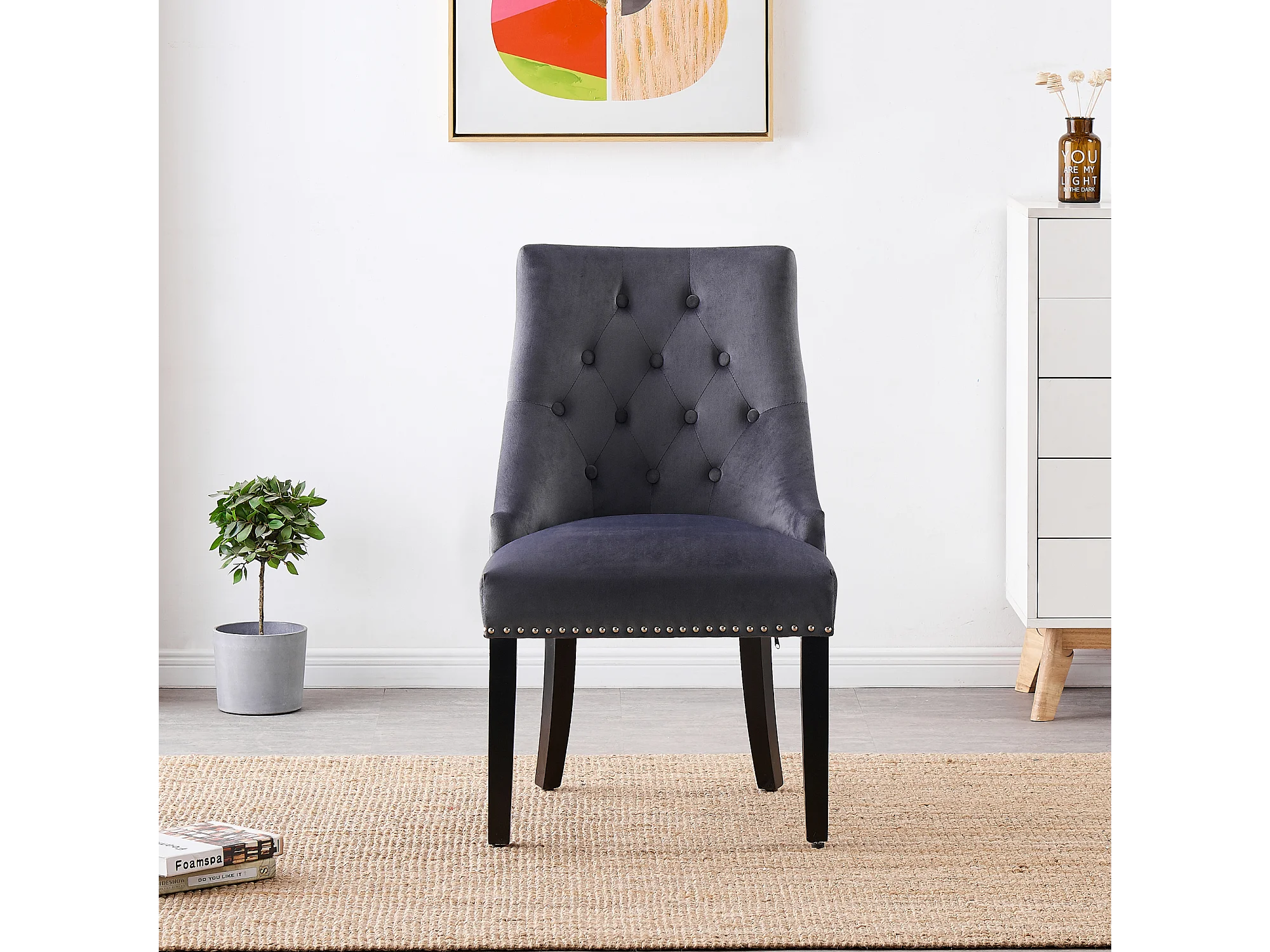 Set aus 2 Windsor-Esszimmerstühlen – Plüsch-Samtpolsterung und stabile Beine aus Massivholz – perfekt für Ihr Esszimmer und Wohnzimmer – Dunkelgrau