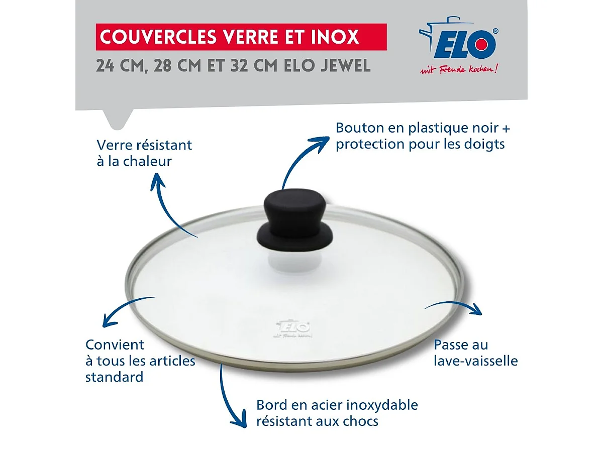 Set aus 3 Edelstahlpfannen 18/10 ELODUR® ohne PFAS Ø24-28-32 cm mit Glasdeckeln – Für alle Herdarten, Induktion, Kapselboden Eco