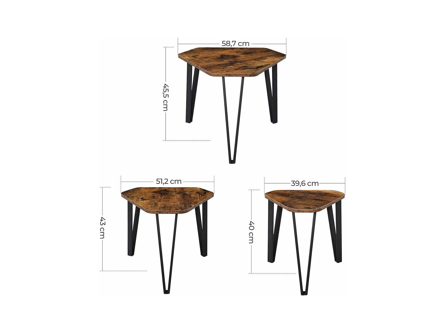 Set aus 3 Gigognes Tischen mit Stahlbeinen und rustikalem Holzdekor