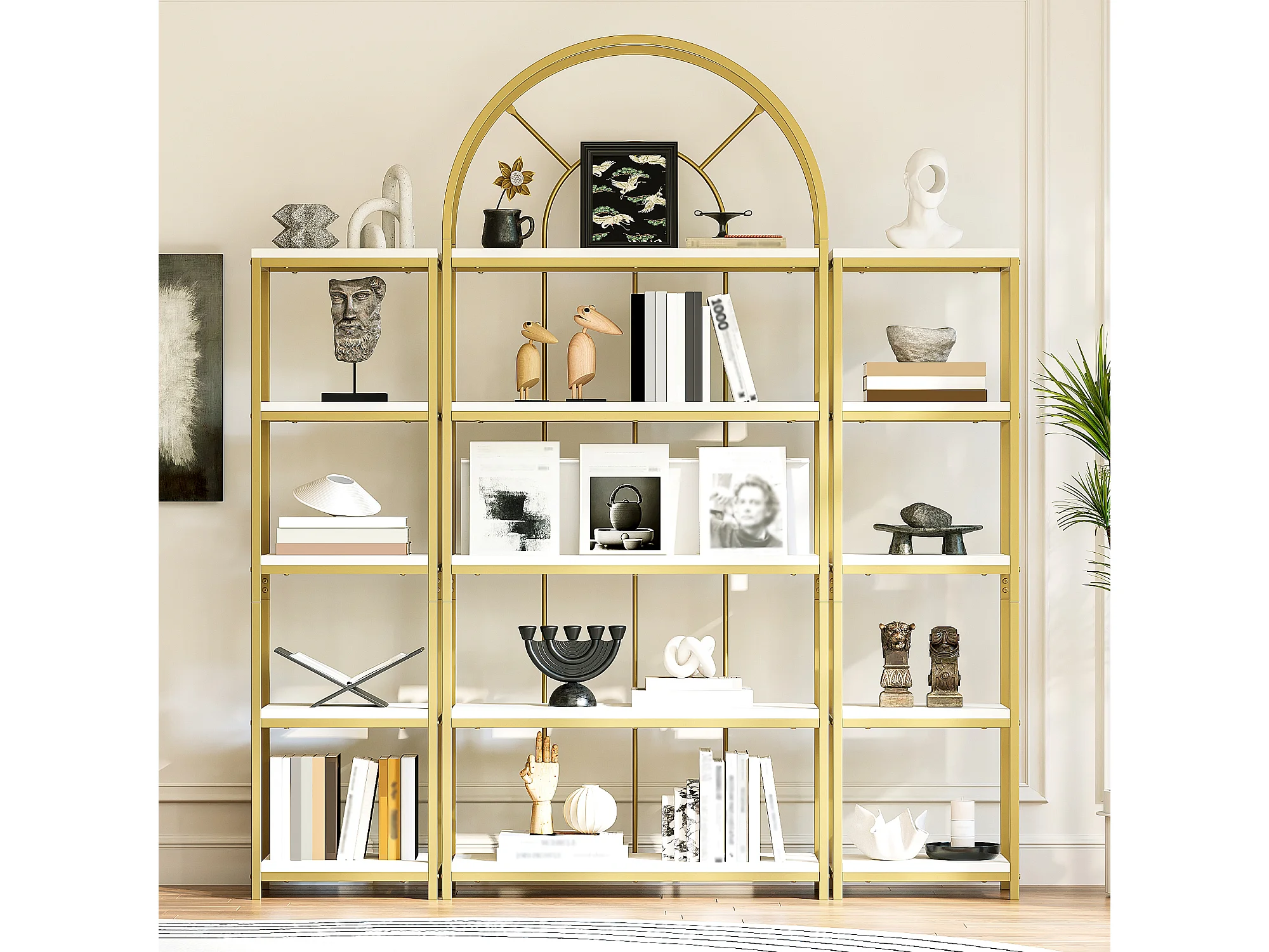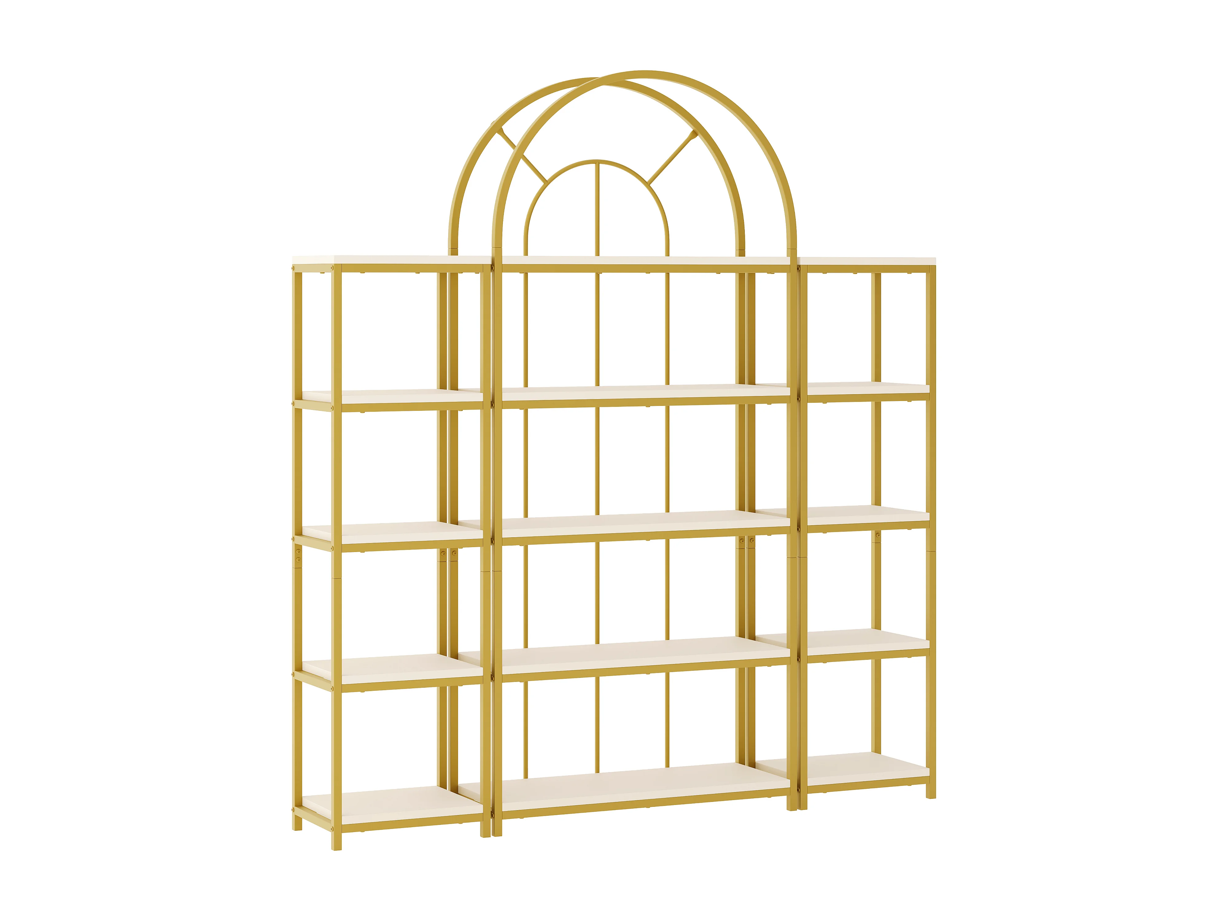 Set aus 3 modularen Regalen 163x30x184 cm - Bücherregal, Vitrine - Höhenverstellbare Füße - Gestell aus Metall + MDF - Gold