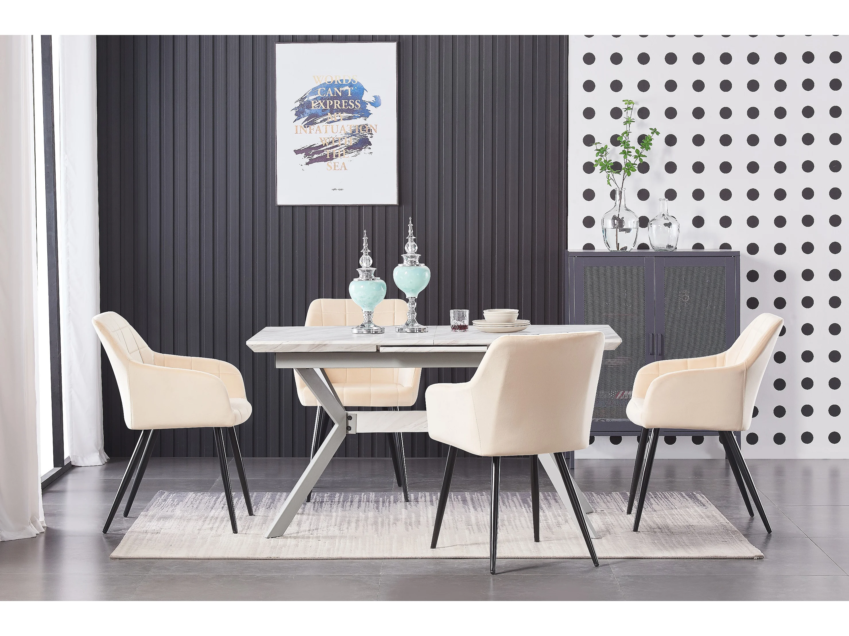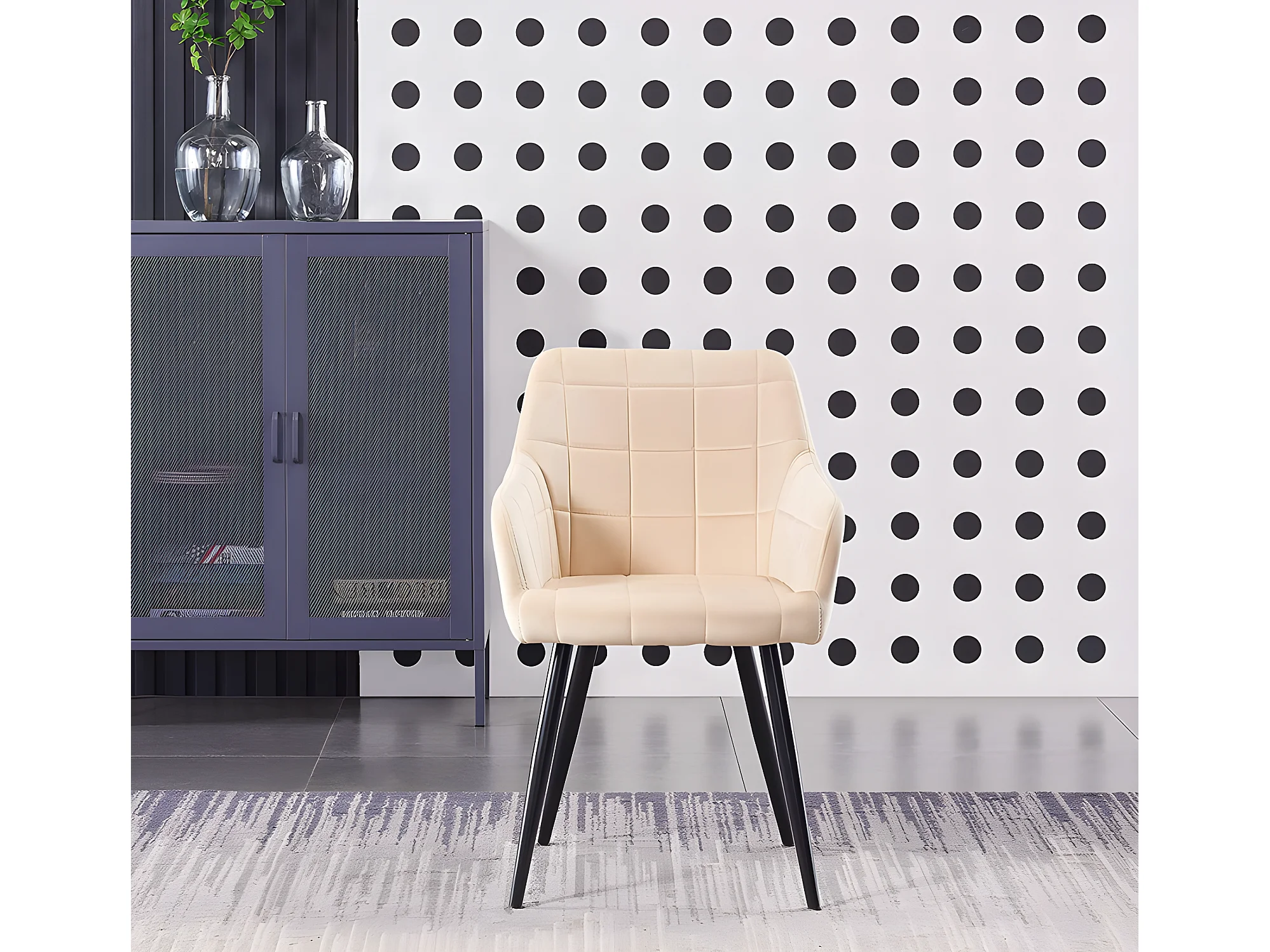 Set aus 4 Camden Esszimmerstühlen – Samt gepolstert mit Metallbeinen – Creme