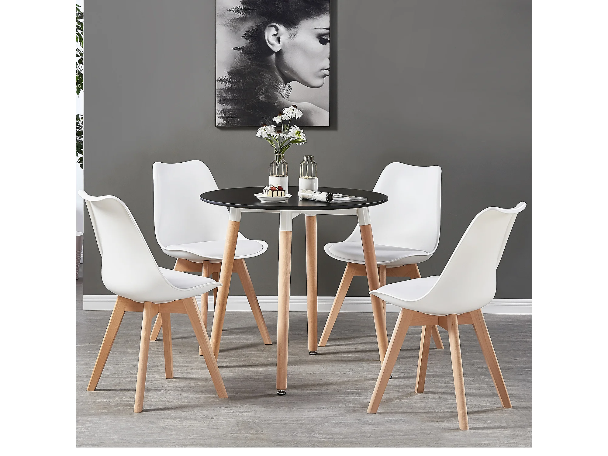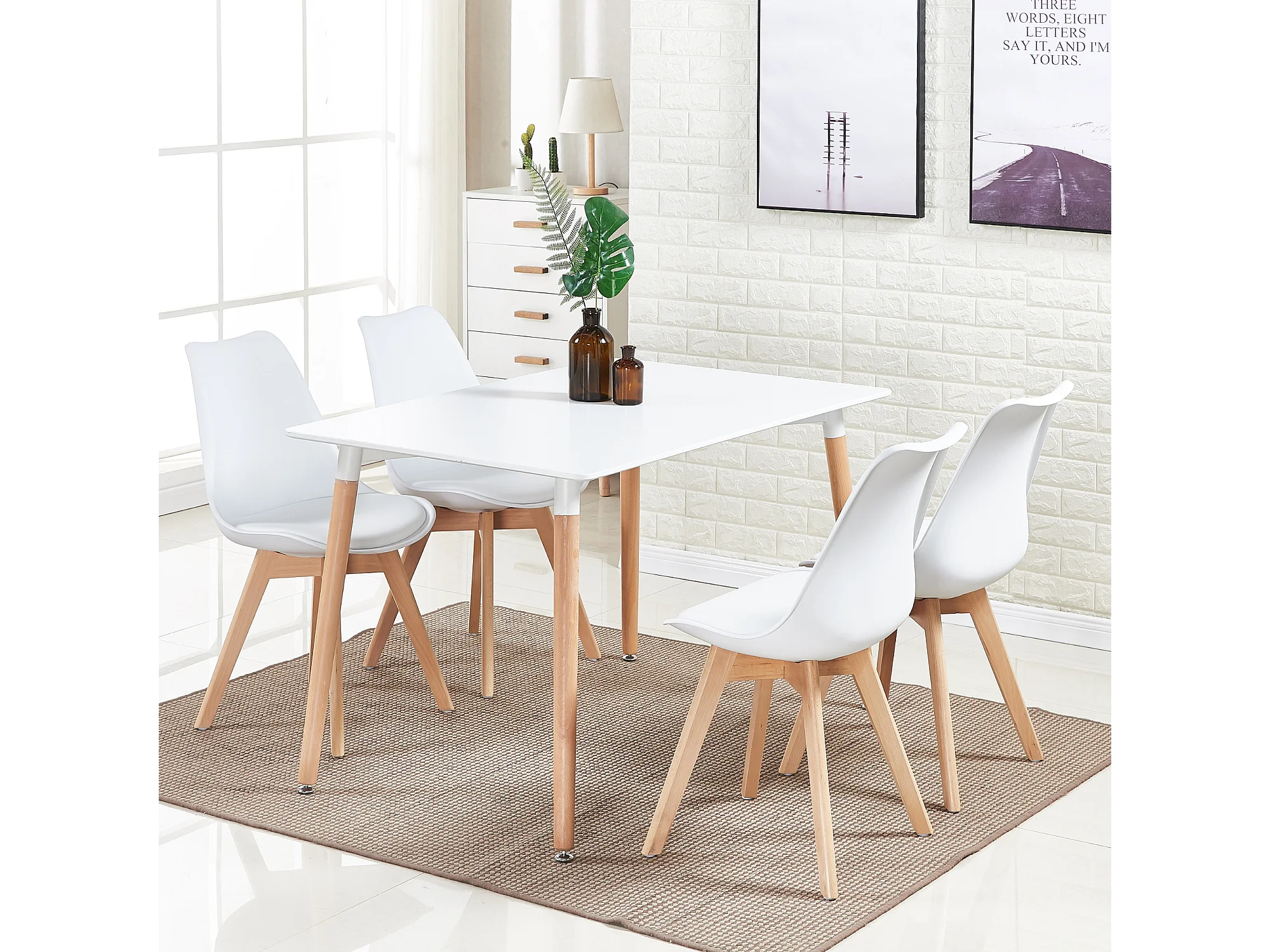 Set aus 4 Lorenzo-Esszimmerstühlen mit stilvollem Kunstledersitz und Massivholzbeinen – perfekt für Esszimmer, Wohnzimmer – Weiß
