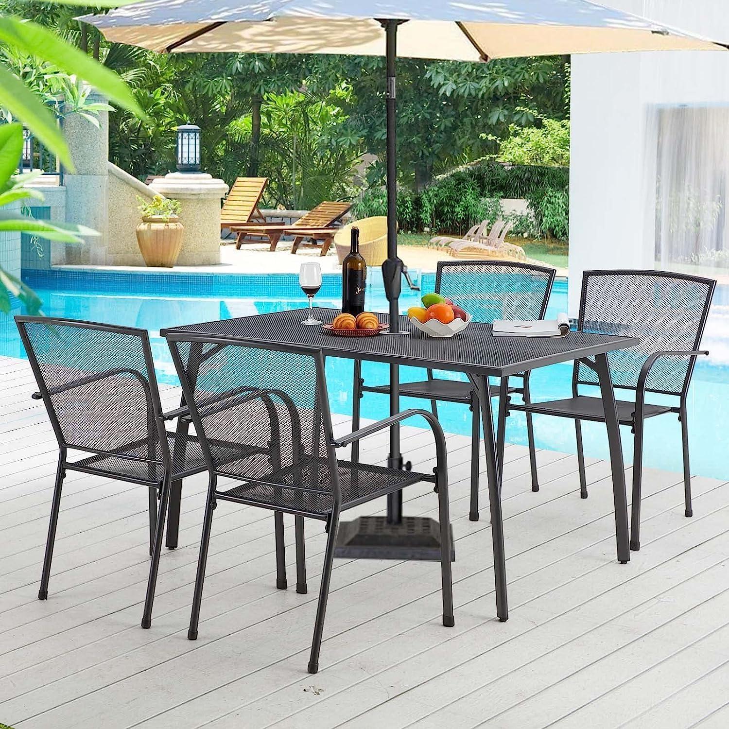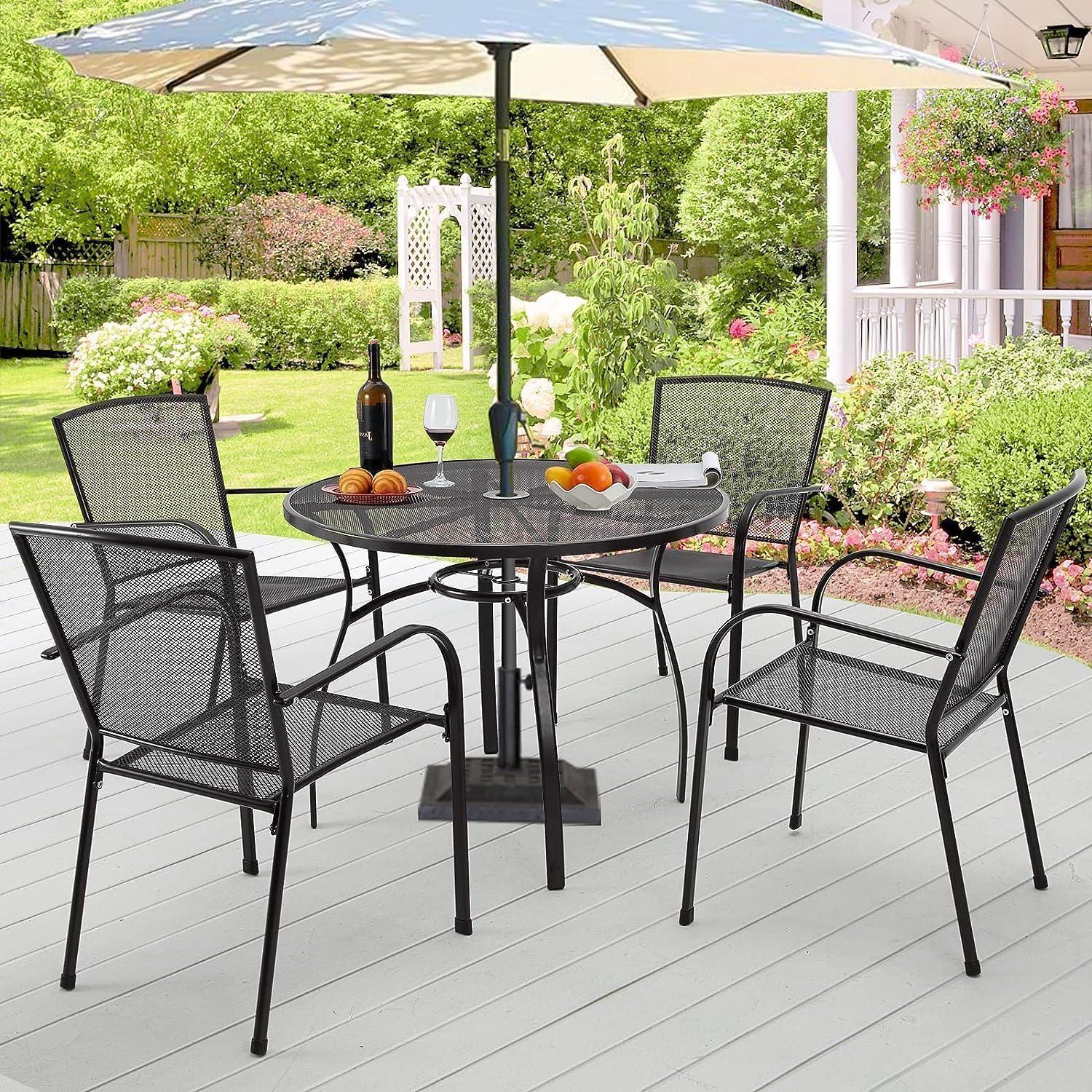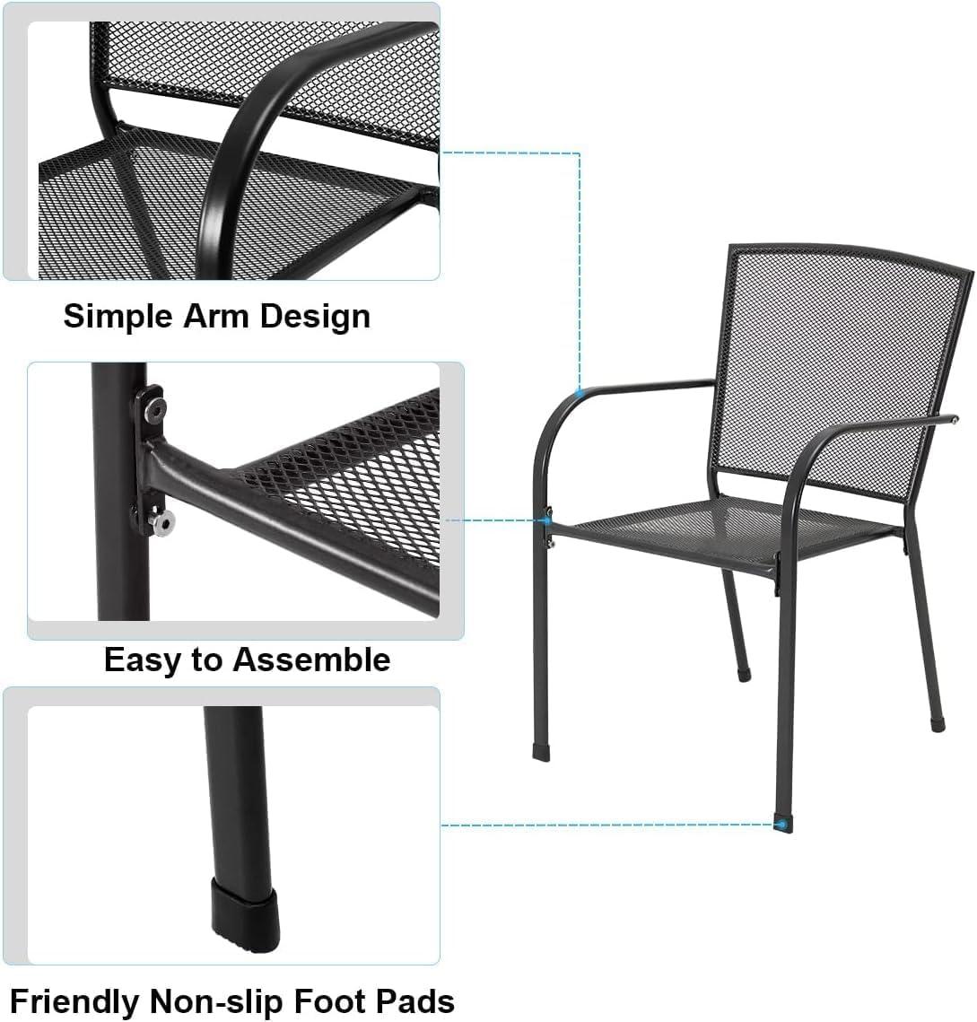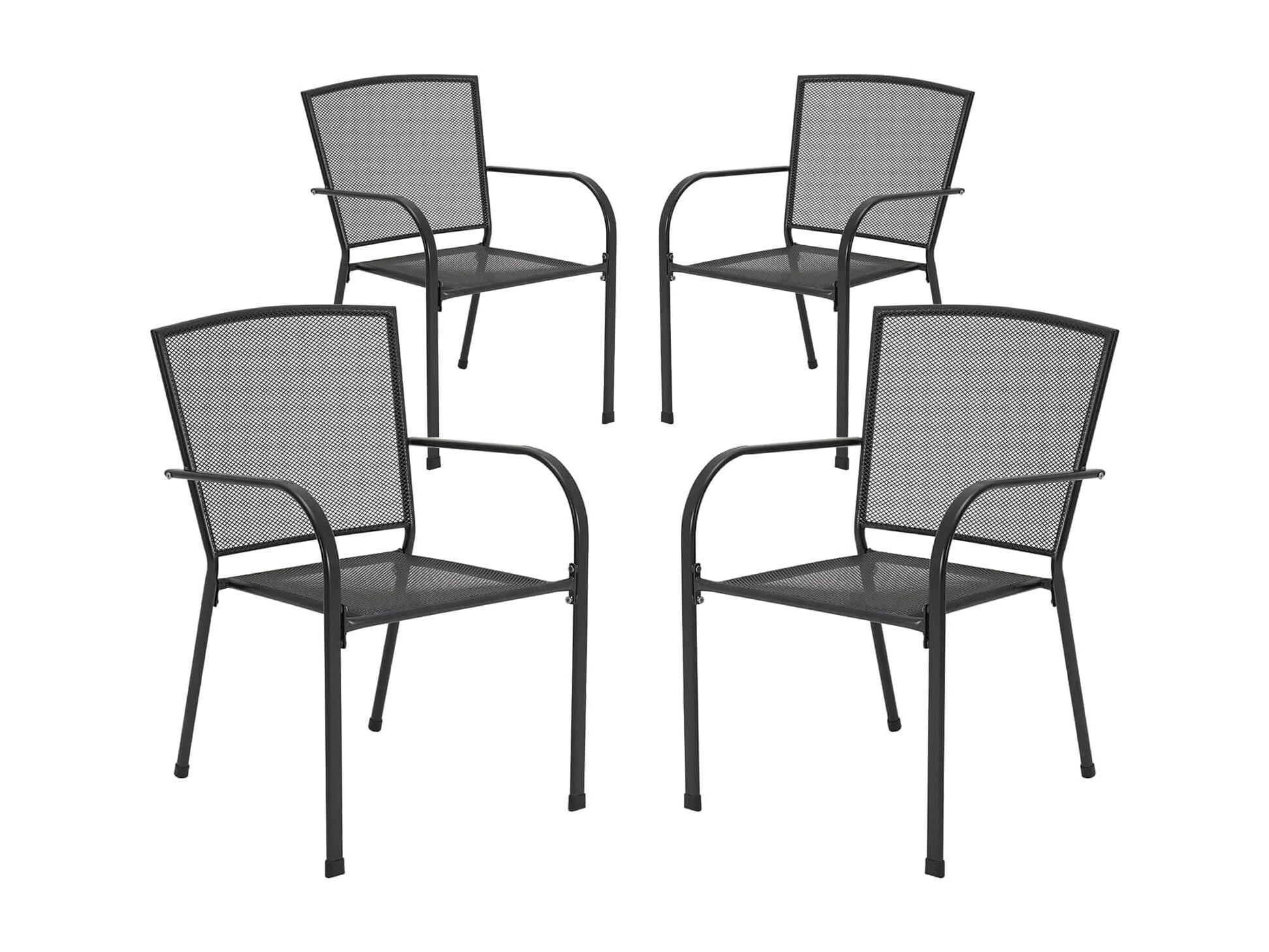 Set aus 4 Stapelbaren Gartenstühlen - Esszimmerstühle aus Metall - 46 x 41 x 86 cm - Grau