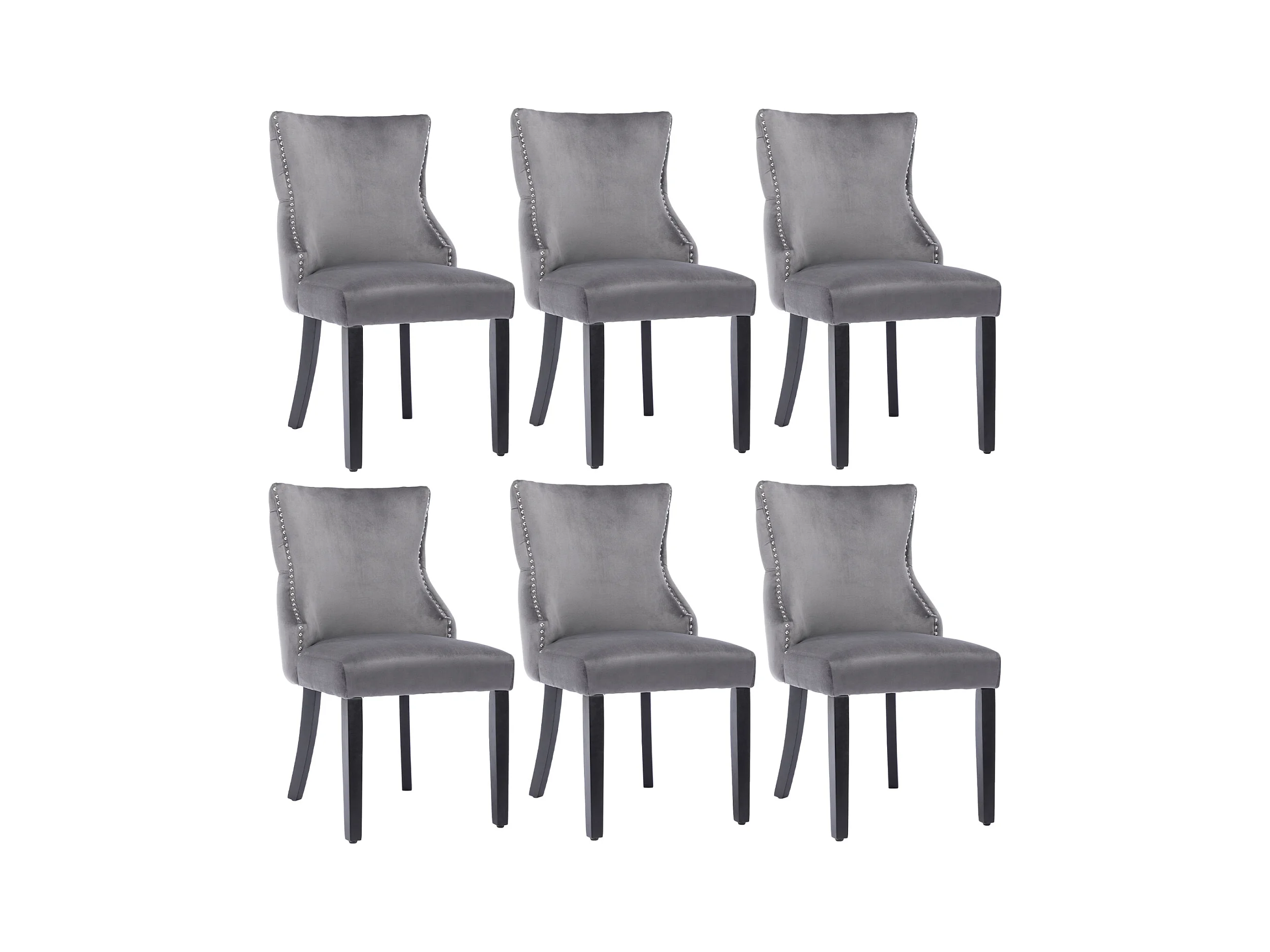 6er-Set Stühle aus grauem Samt – 4-Bein-Stuhl mit Knopfheftung, Massivholzrahmen für Esszimmer – 91 x 50 x 49 cm