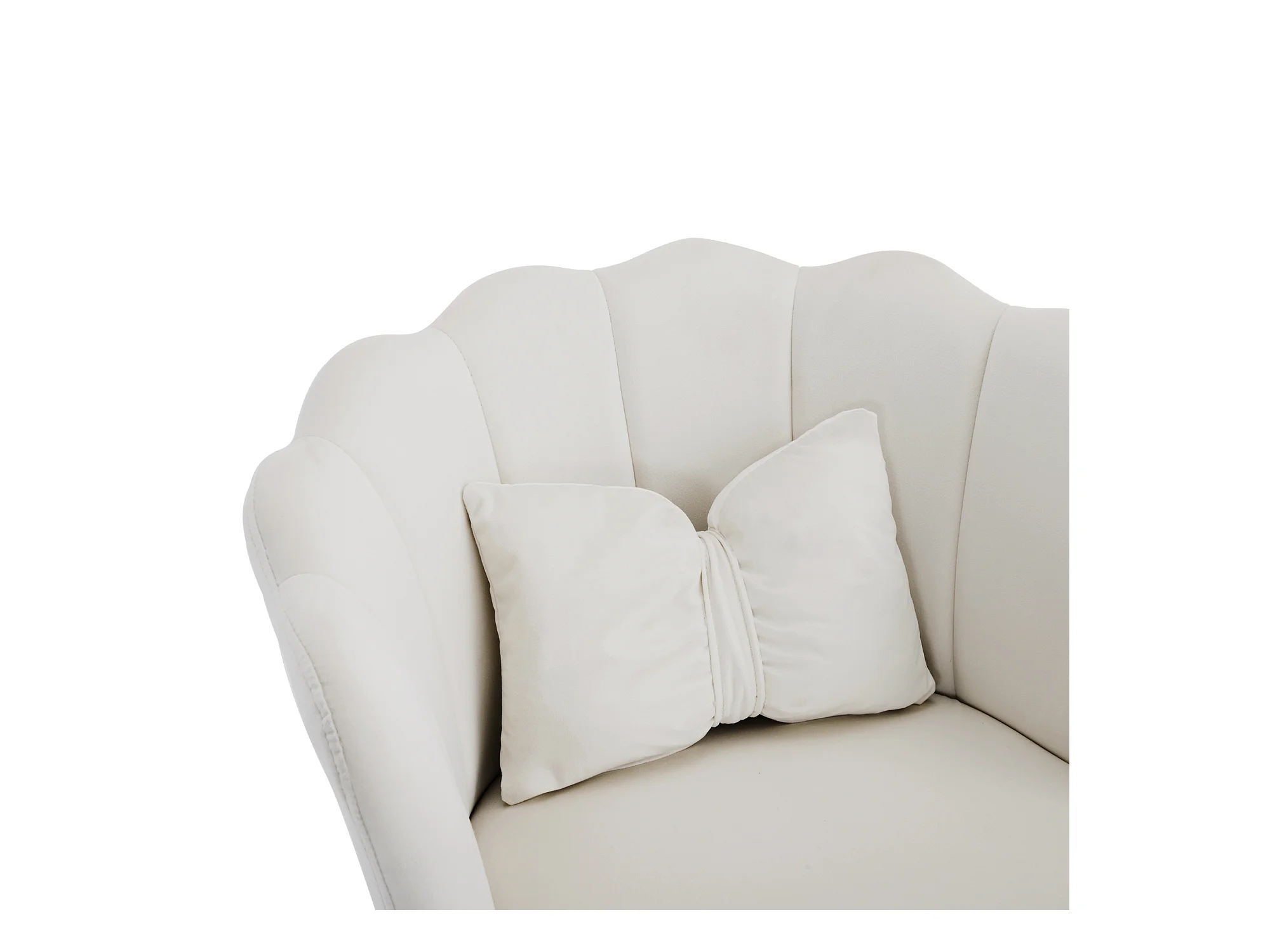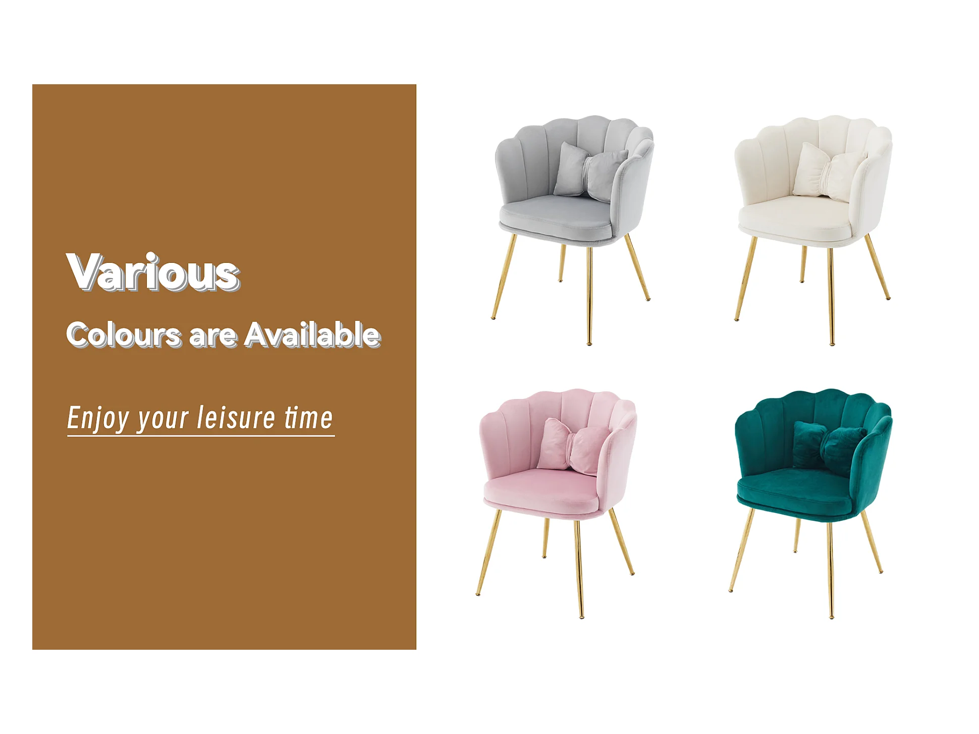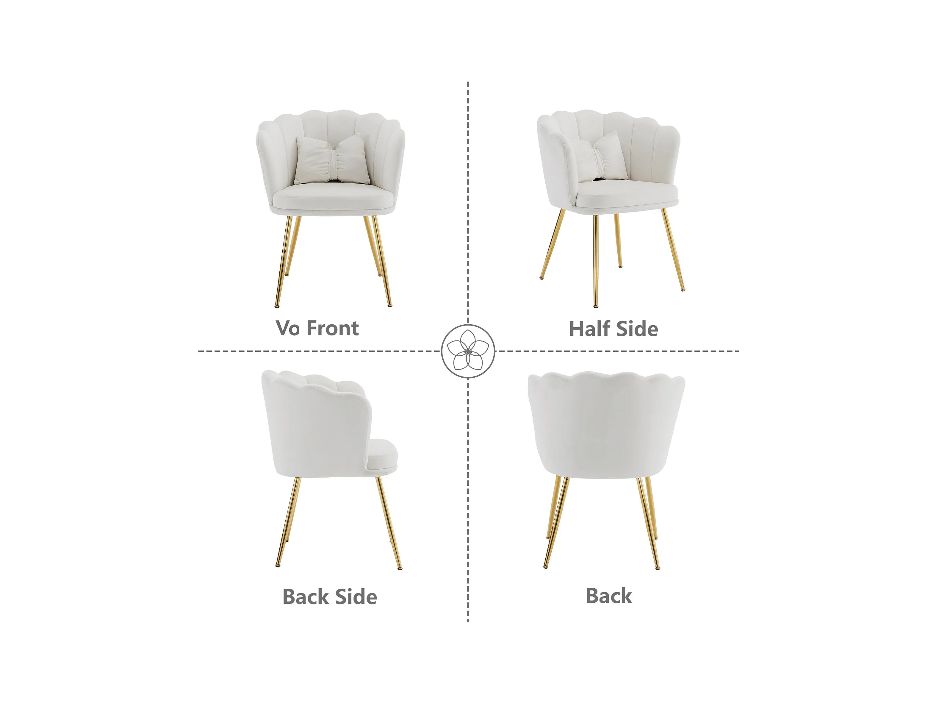 Set aus 6 Samtstühlen – mit blütenblattförmiger Rückenlehne – goldene Metallbeine – Beige