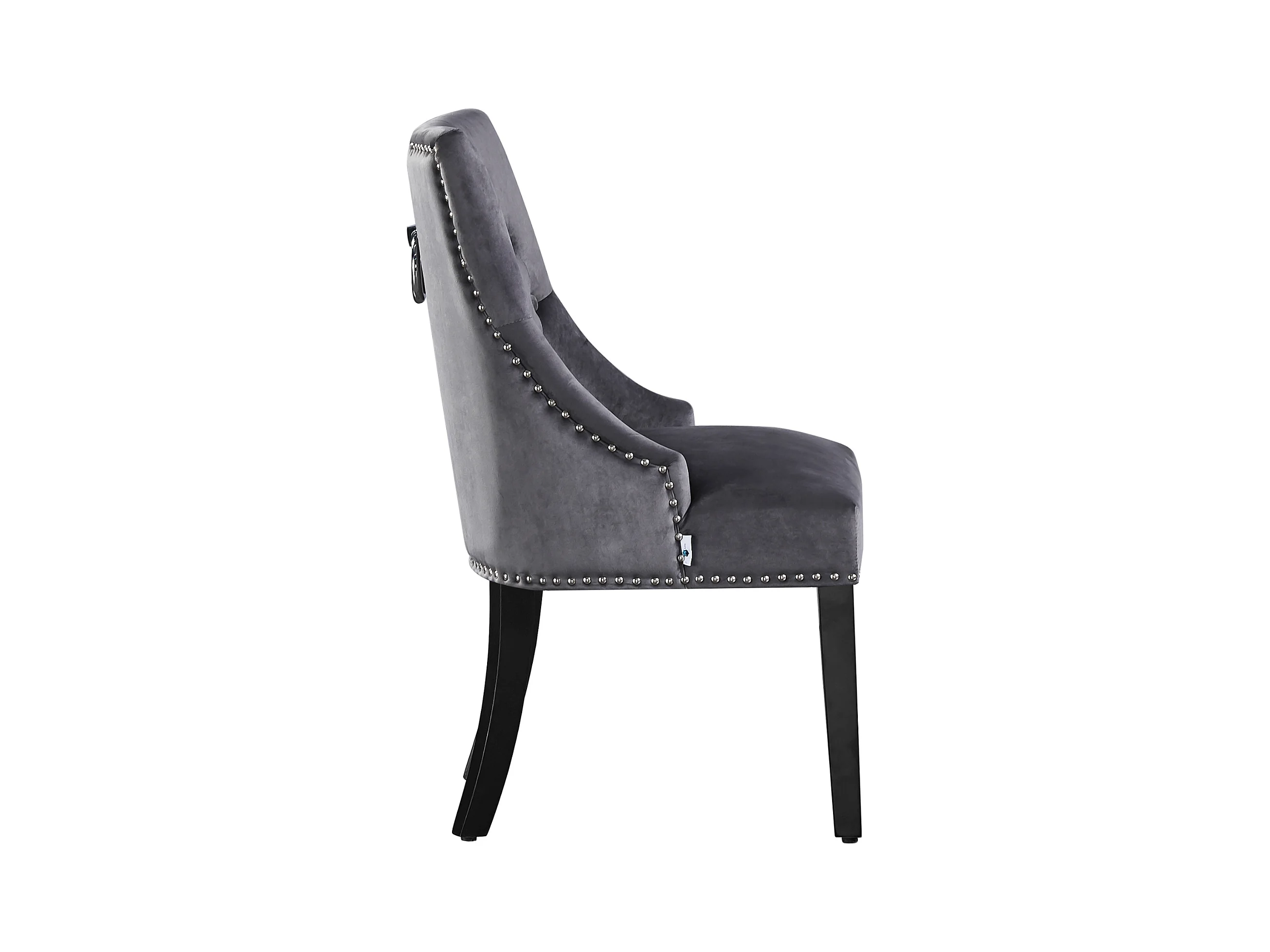 Set aus 6 Windsor-Esszimmerstühlen – Plüsch-Samtpolsterung und stabile Beine aus Massivholz – perfekt für Ihr Esszimmer und Wohnzimmer – Dunkelgrau