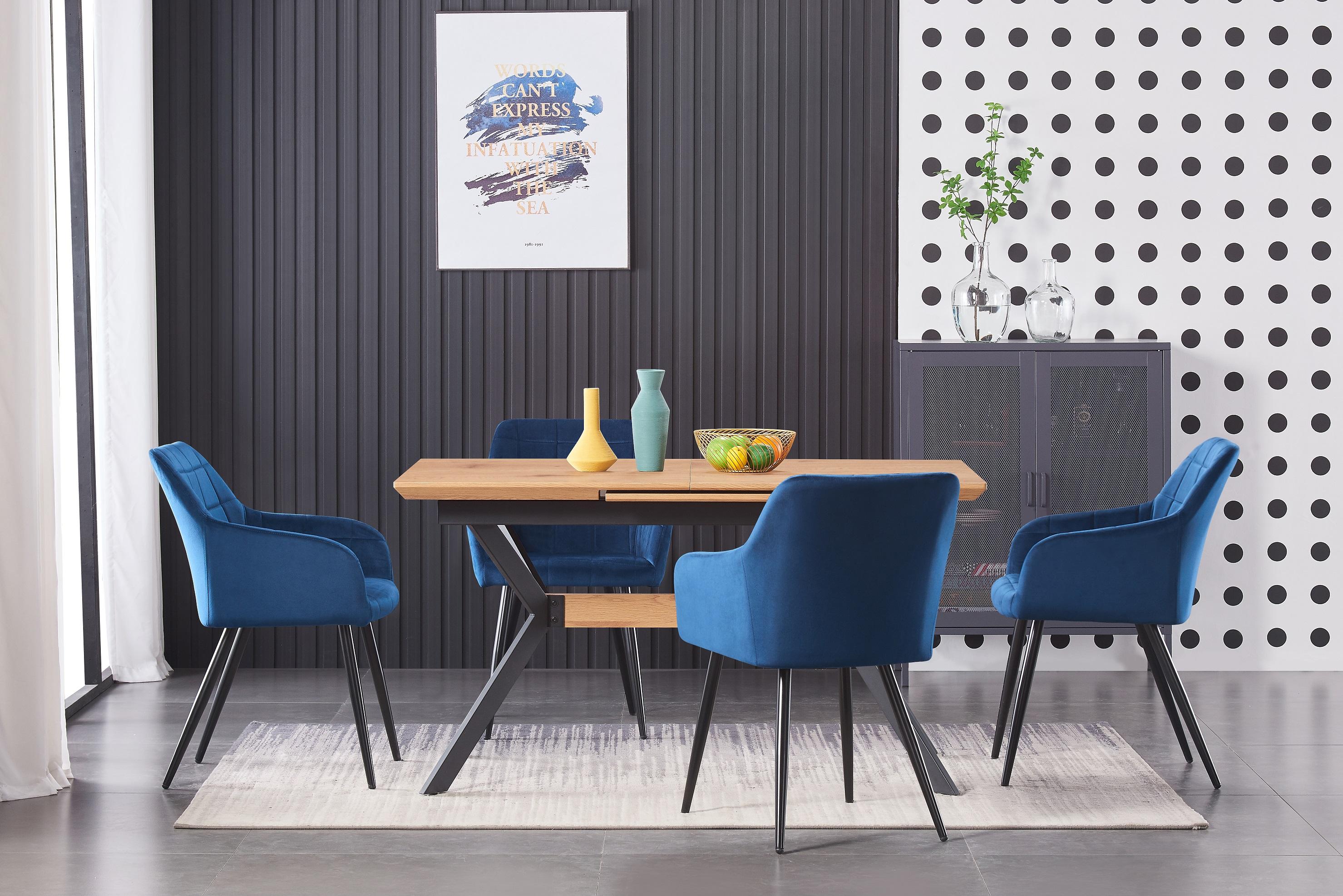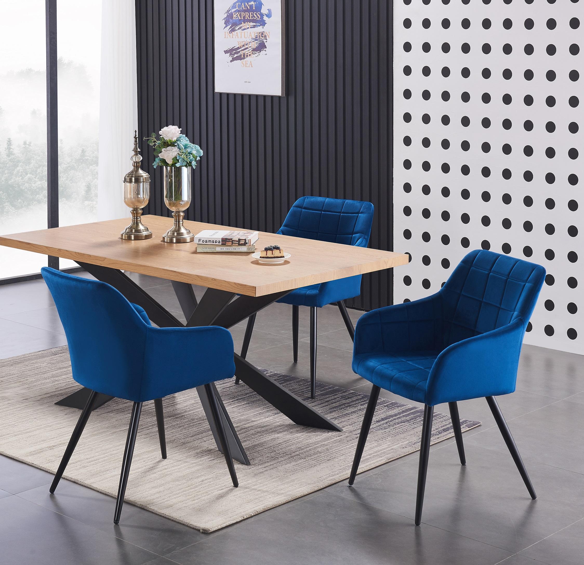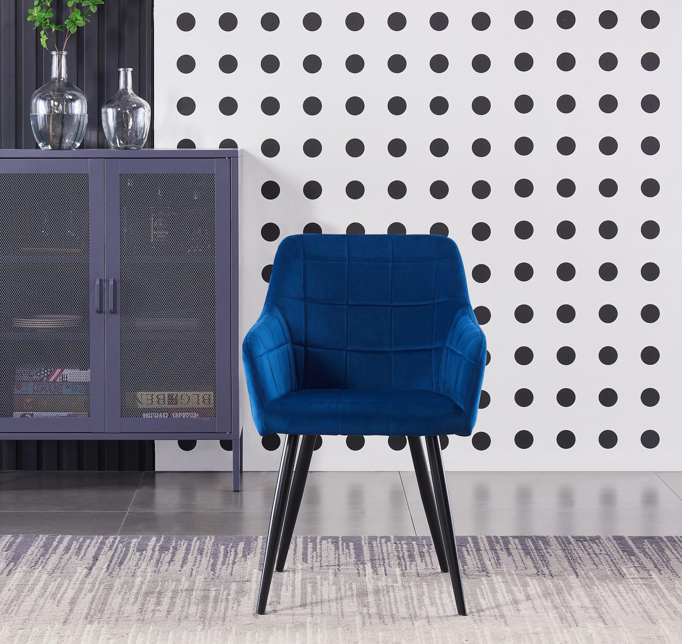 Set aus 8 Camden Esszimmerstühlen – Samt gepolstert mit Metallbeinen – Blau