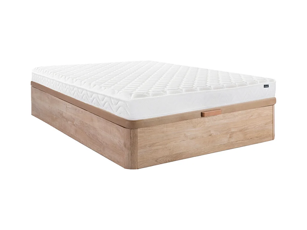 Set aus Bettgestell mit Bettkasten + Matratze - 160 x 200 cm - Memory Schaum - Stärke 15 cm - Holzfarben hell - PELOPS von DREAMEA