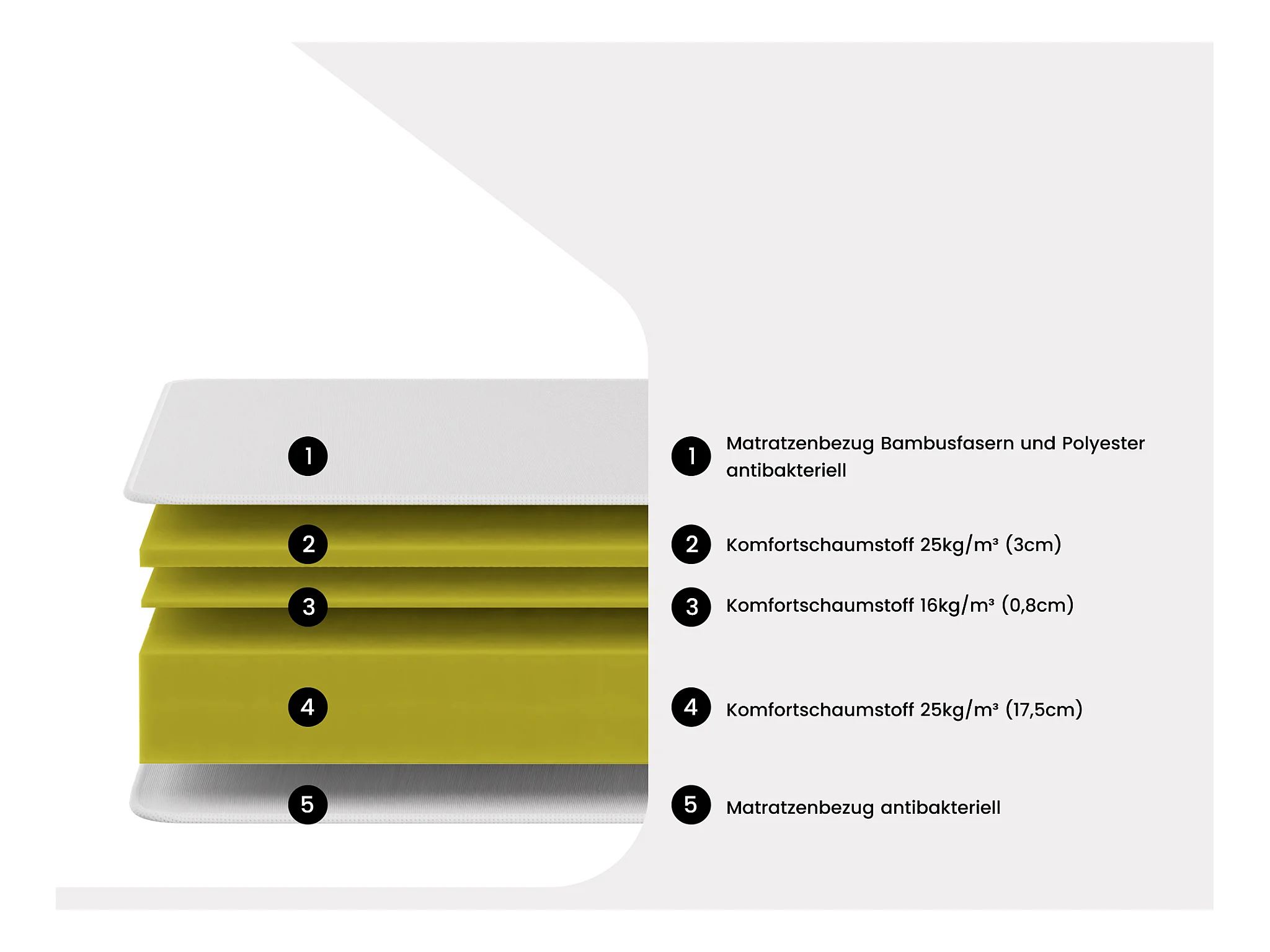 Set aus Bettgestell mit Bettkasten + Schaumstoffmatratze - Bambusbezug - 180 x 200 cm - Stärke 23 cm - Holzfarben hell - ADANA von NATUREA