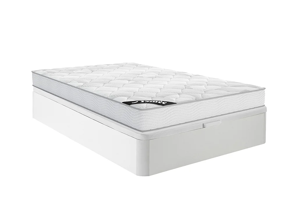 Set aus Bettgestell mit Bettkasten + Taschenfederkernmatratze - 140 x 190 cm - Stärke 20 cm - Weiß - SONGE von YSMÉE