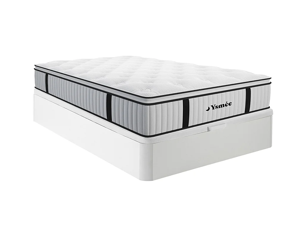 Set aus Bettgestell mit Bettkasten + Taschenfederkernmatratze & Topper - 160 x 200 cm - Stärke 28 cm - Weiß - AMERICAN DREAM von YSMÉE