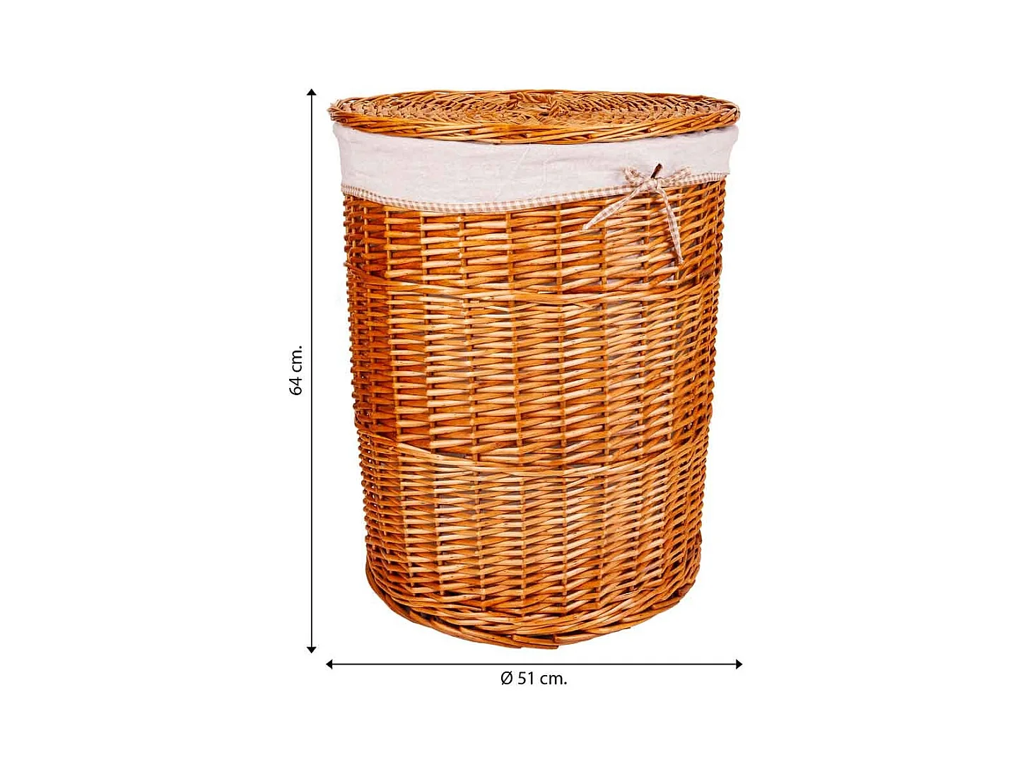 Set aus Wäschekorb und zwei braun gefütterten Weidenkörben
