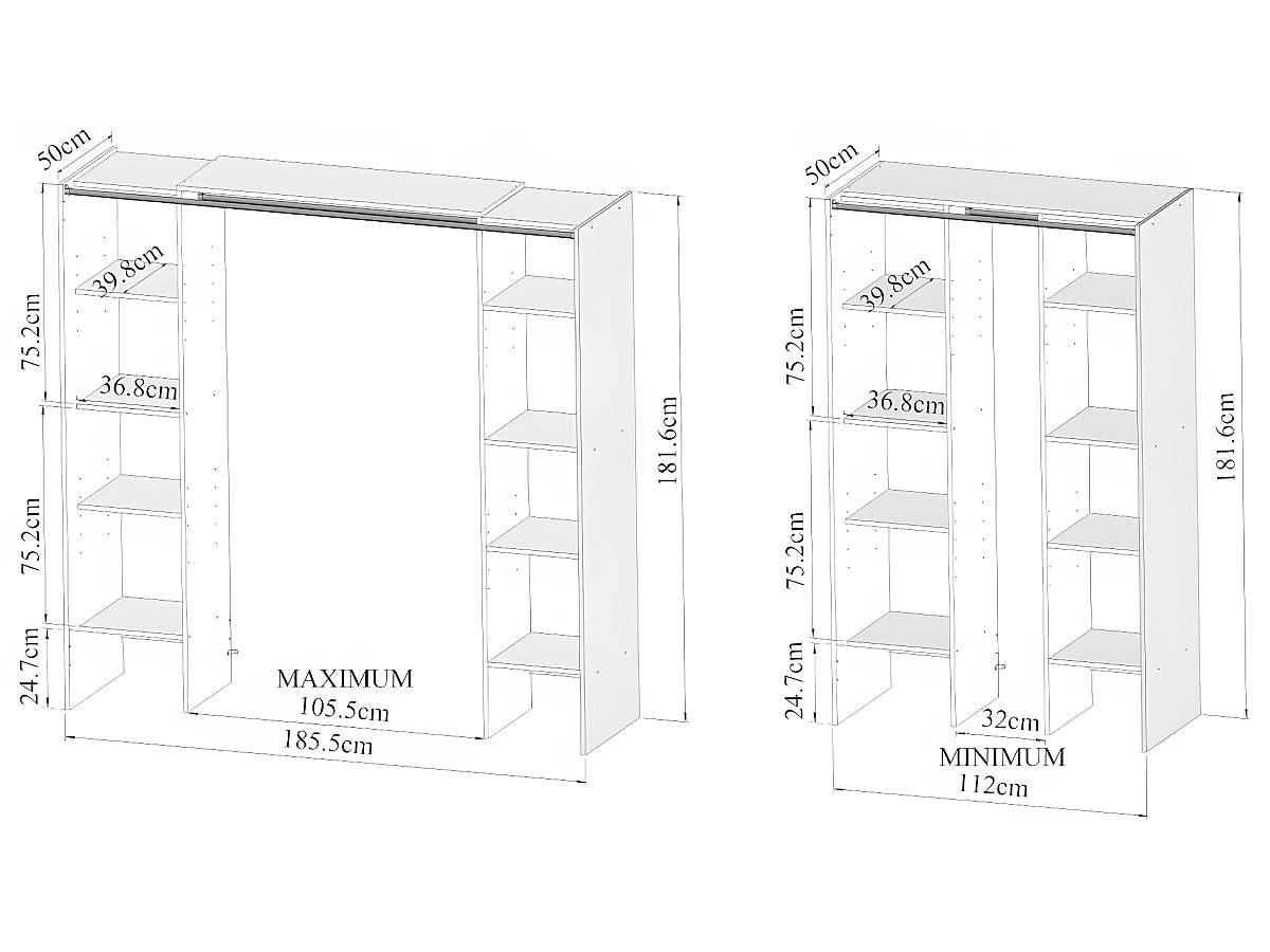 - Maße Kleiderschrank: B 112-185 cm x T 50 cm x H 182 cm