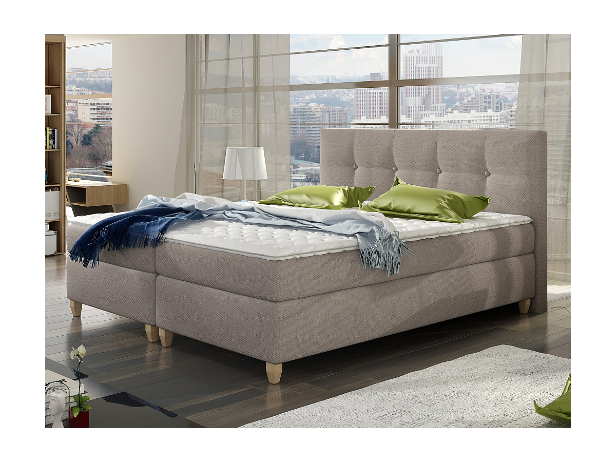 Boxspringbett Stoff Poupoupidou - 160 x 200 cm - Taupe