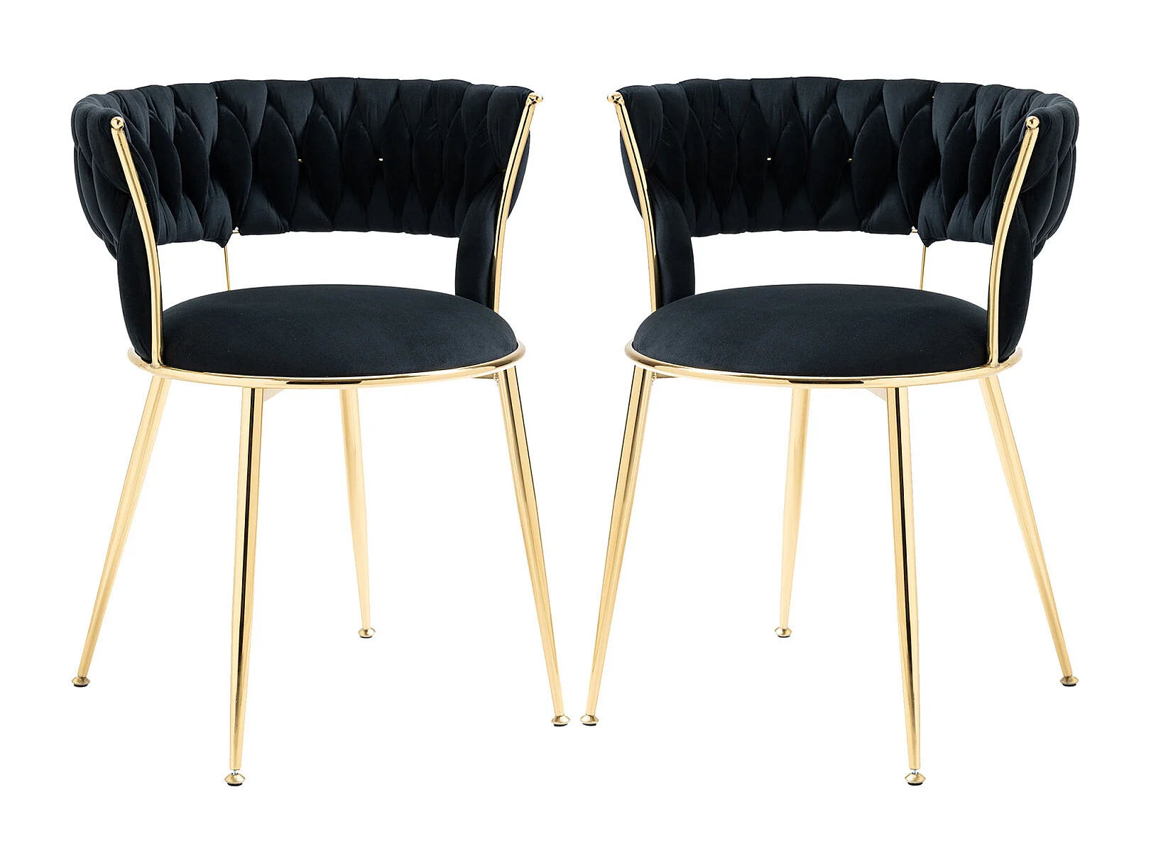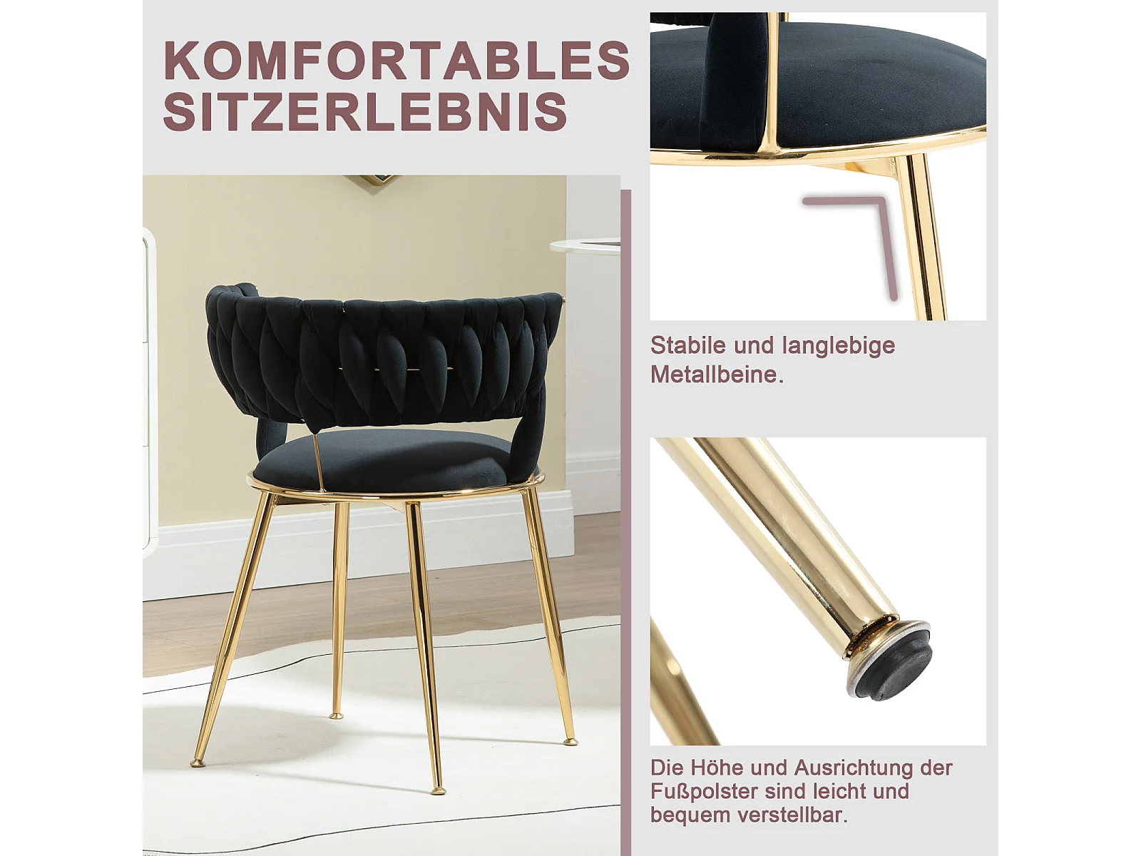 Set mit 2 Esszimmerstühlen 22,44 x 21,65 x 27,56 Zoll – Loungesessel mit Samtakzent und schwarzen Metallbeinen