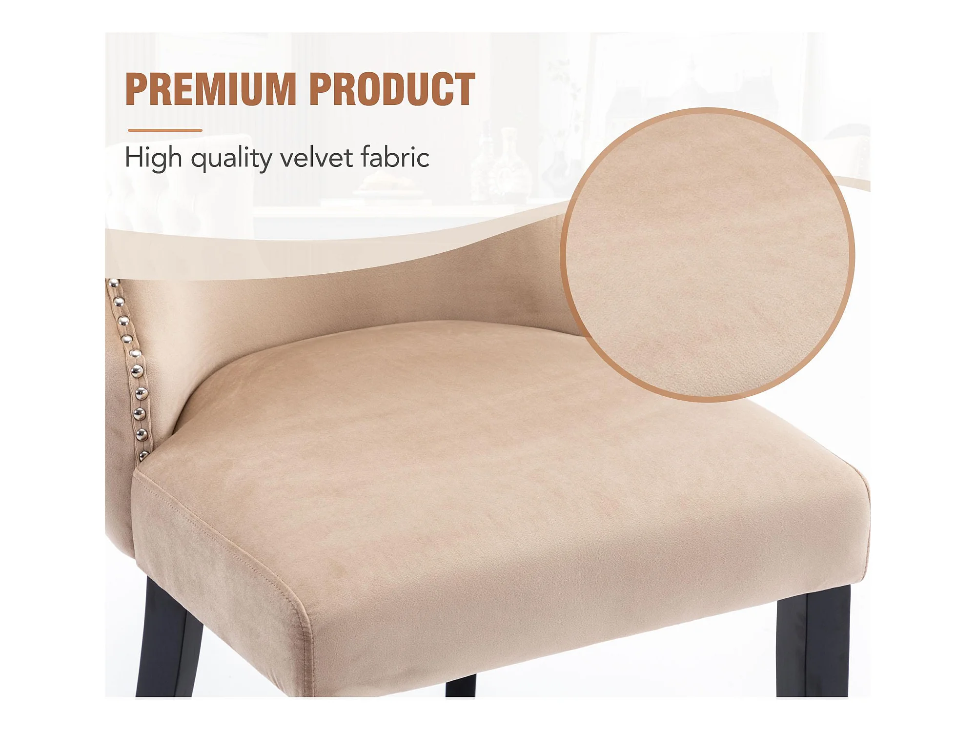 Set mit 2 Gondelstühlen aus Samt – Beine aus Massivholz – Beige