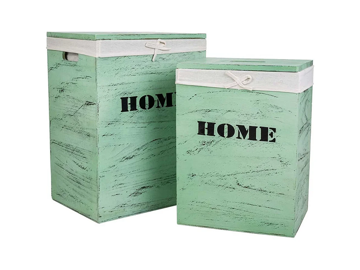 Set mit 2 grünen Wäschekörben aus Holz