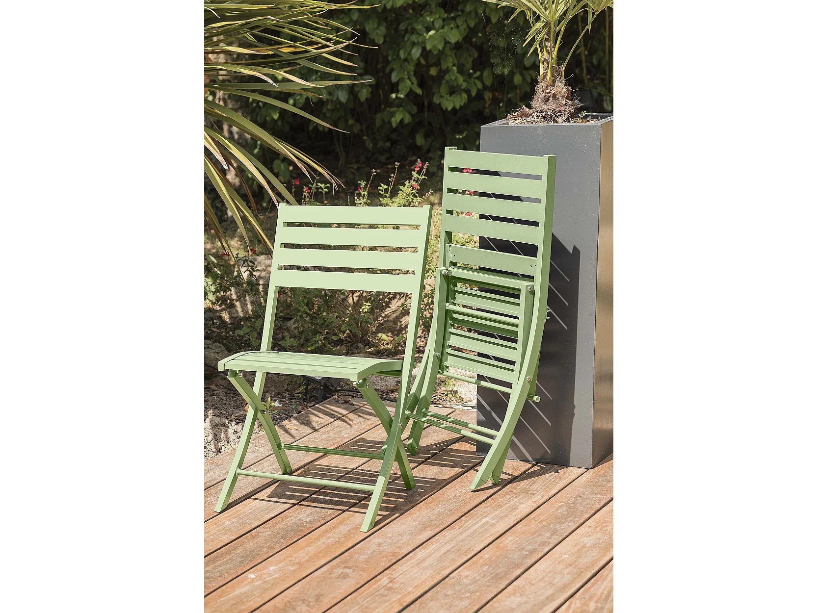 Set mit 2 lagunengrünen Gartenstühlen aus Aluminium