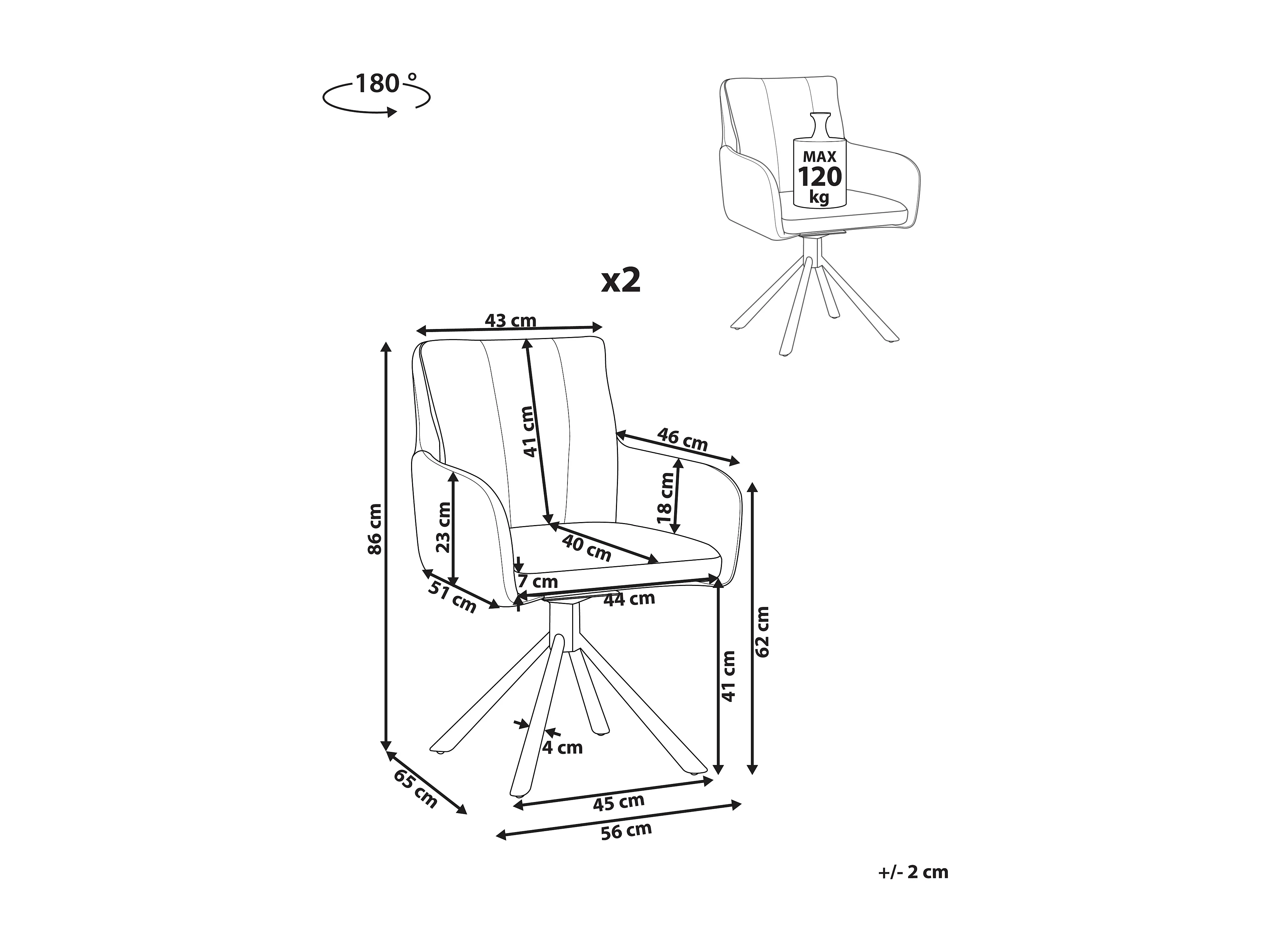 Esszimmerstuhl 2er Set Stoff beige/taupe gepolstert drehbar Metallbeine Sardoal