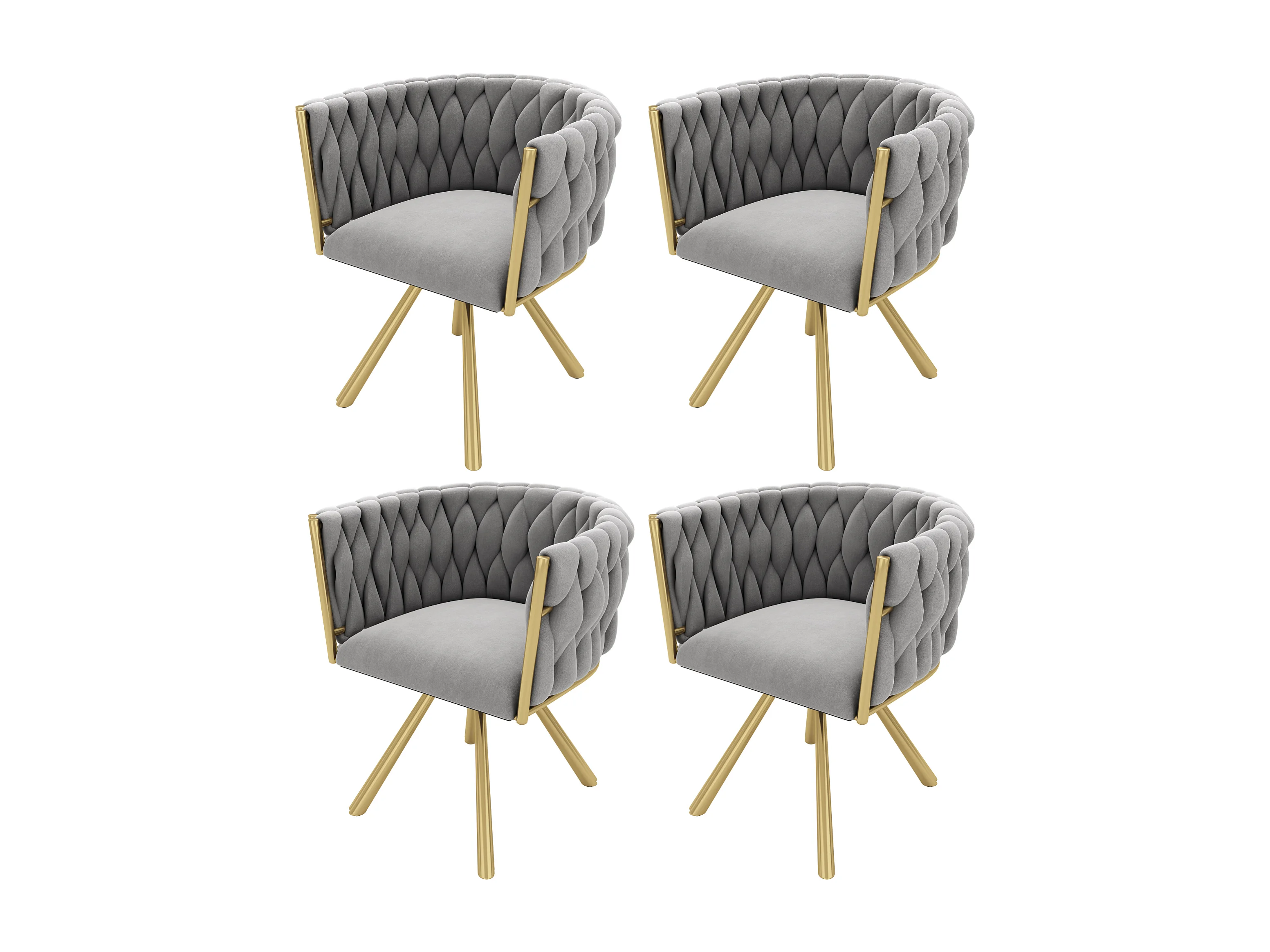 Set mit 4 drehbaren Samtstühlen mit Metallbeinen – grau und gold