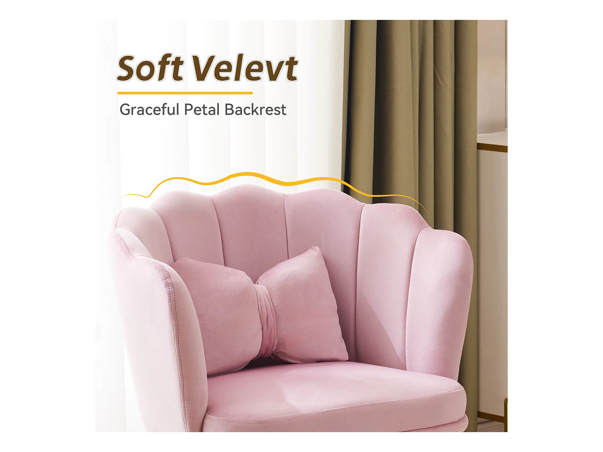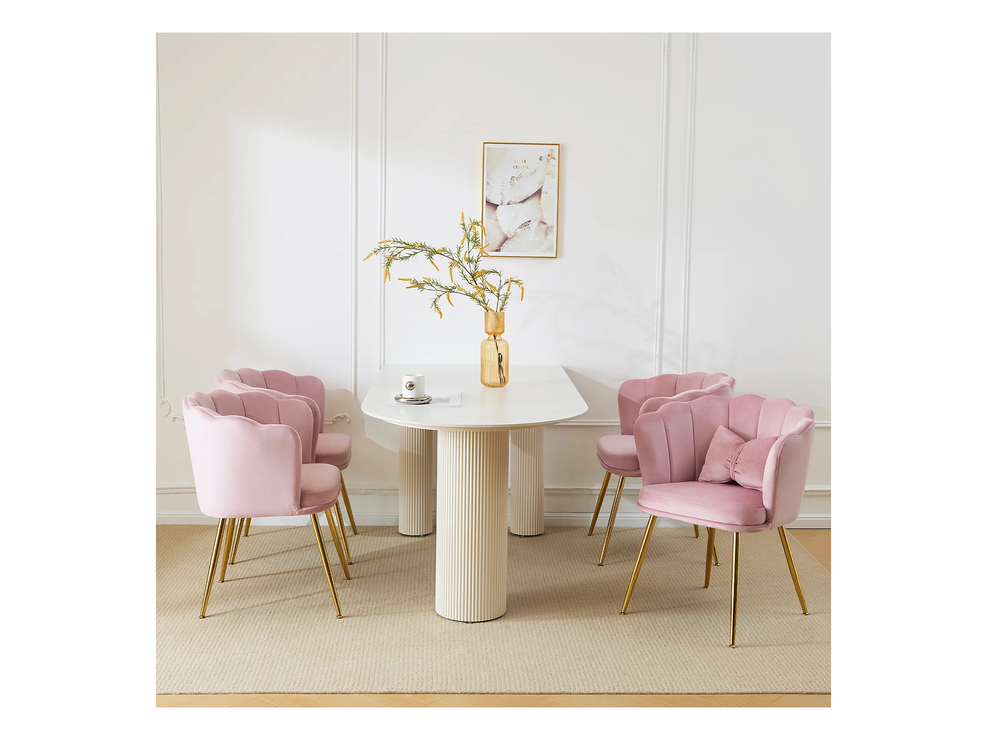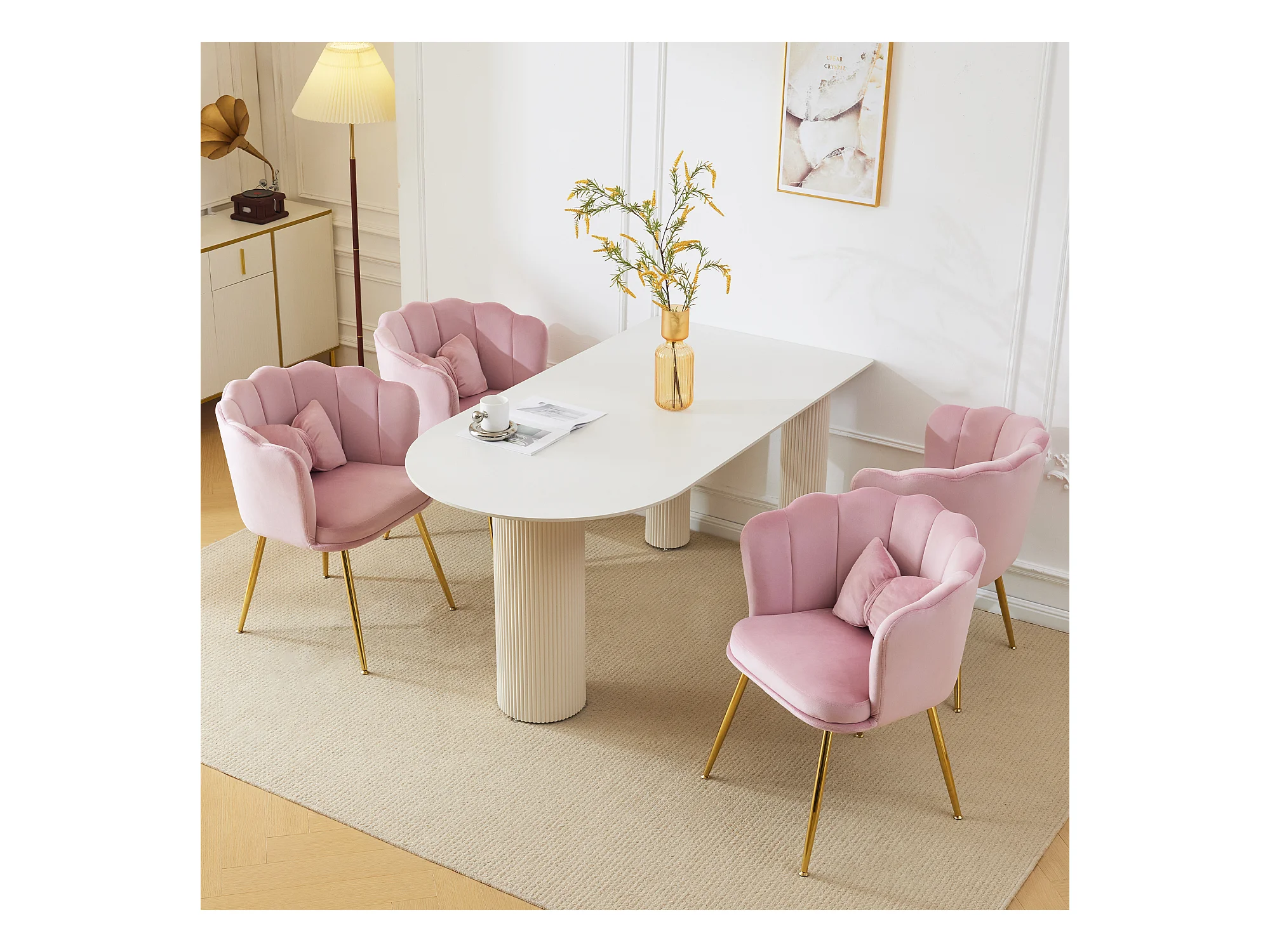 Set mit 4 Esszimmerstühlen aus Samt – 62 x 54,5 x 77 cm – mit Rückenlehne – Metallbeine – Rosa