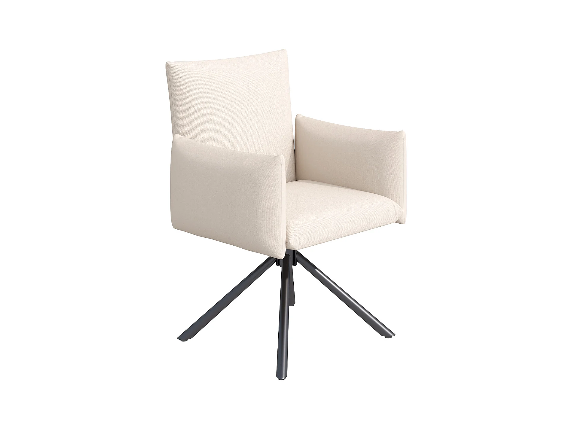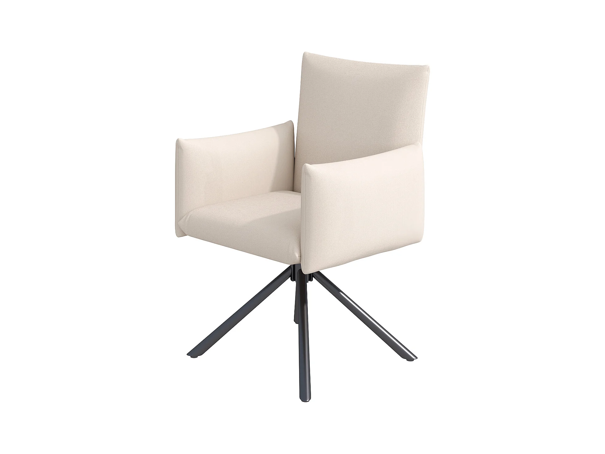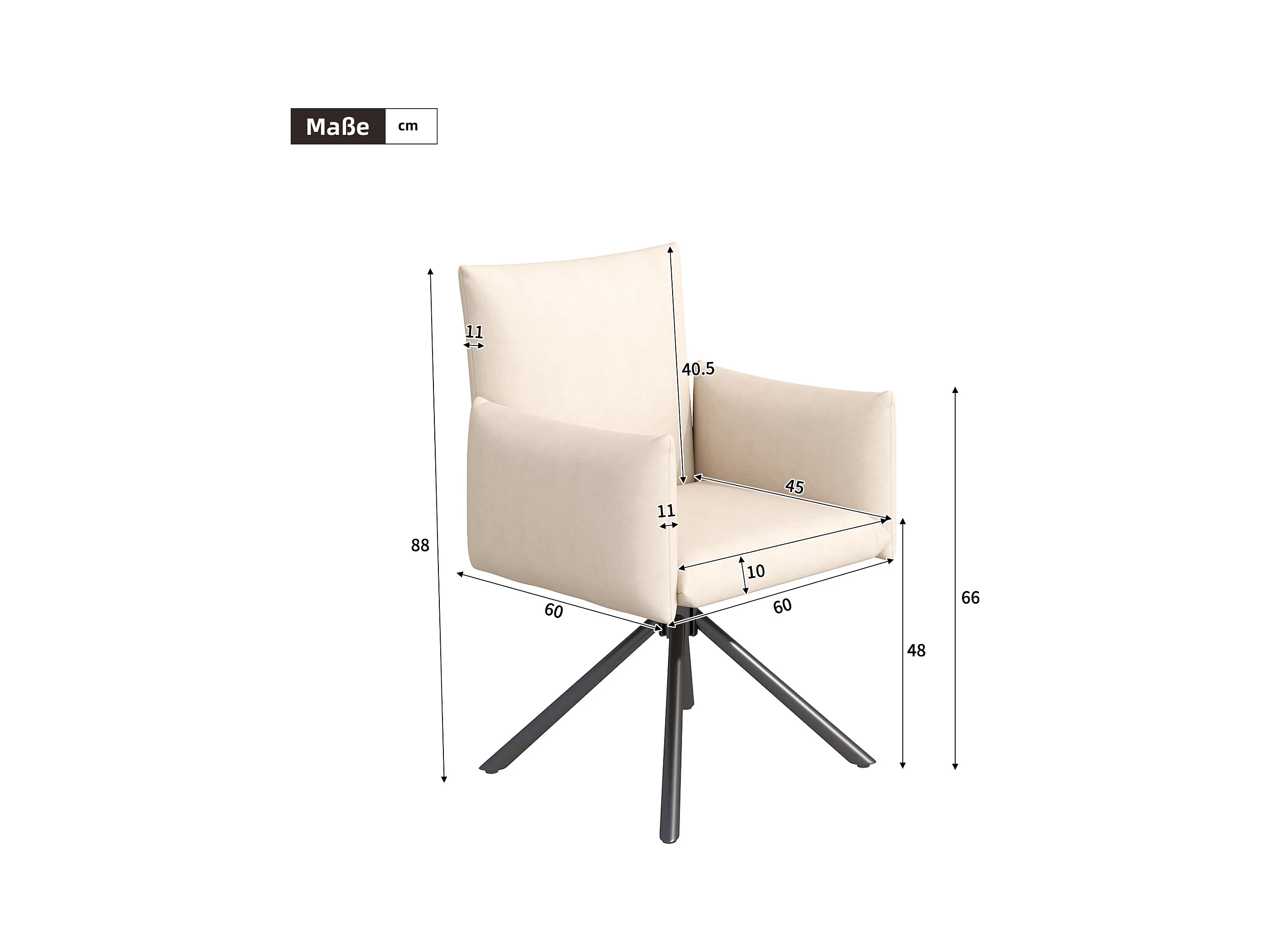 Set mit 4 gepolsterten Sesseln - 360° Drehfunktion - mit 4 Metallbeinen - Leinen - Beige