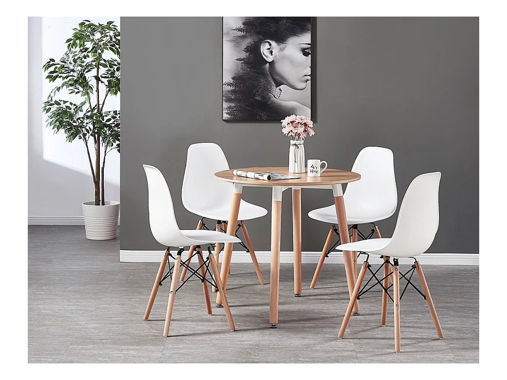 Set mit 4 Ghost-Kunststoffstühlen – Holzbeine – Weiß