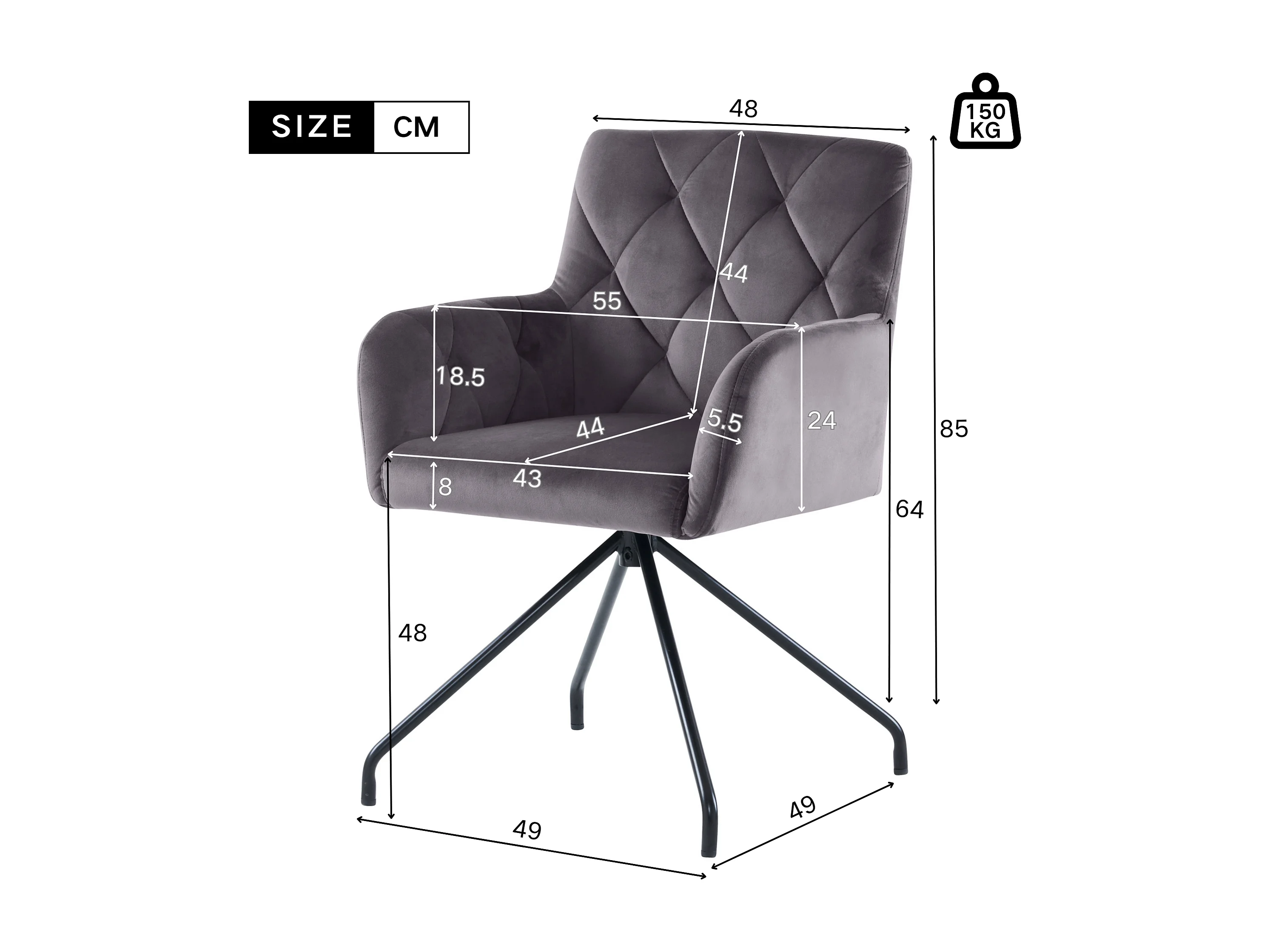 Set mit 4 samtgepolsterten Stühlen mit Metallbeinen – Grau